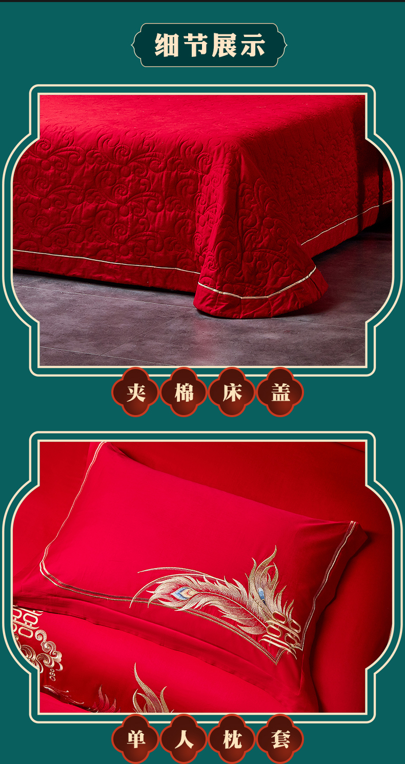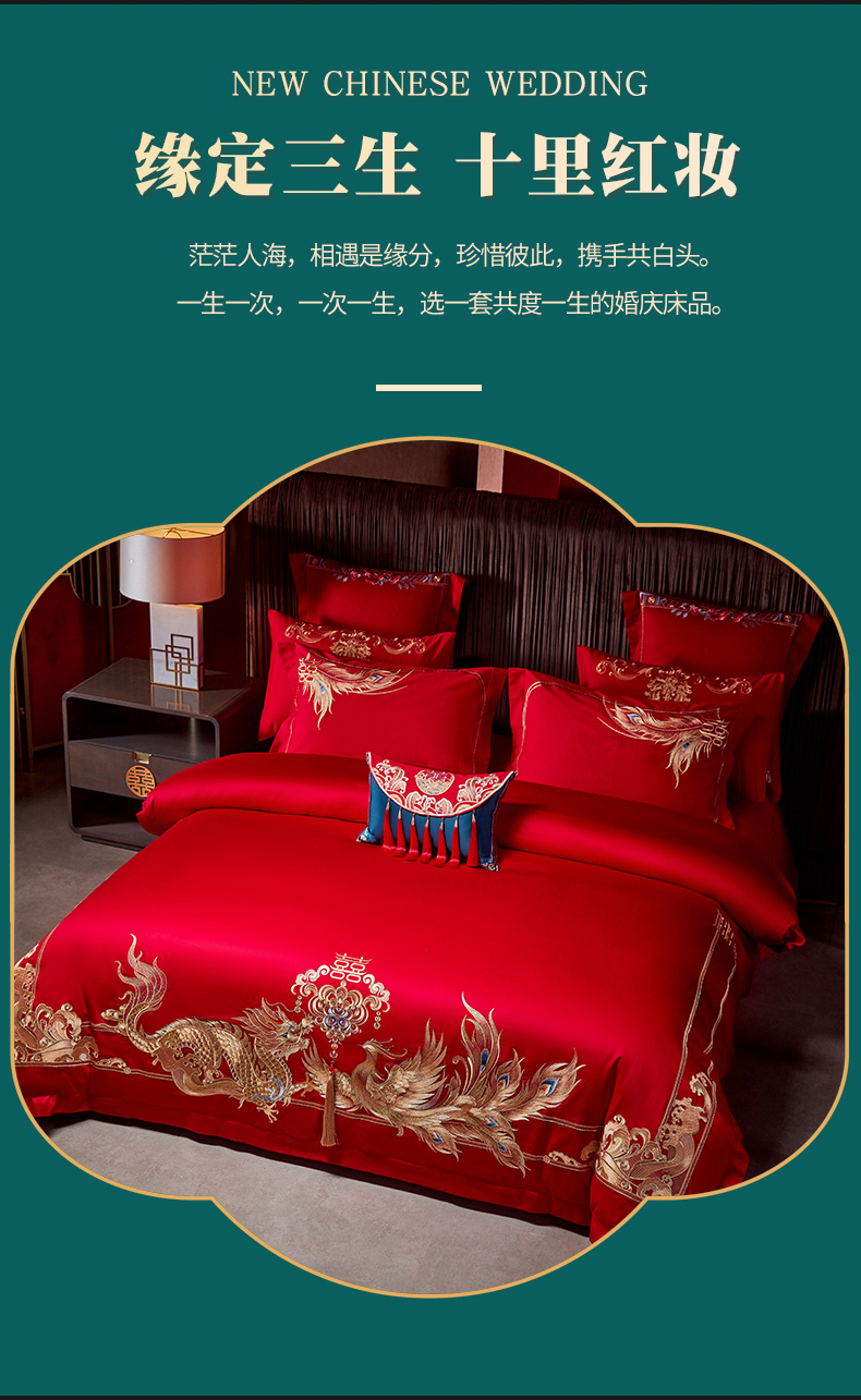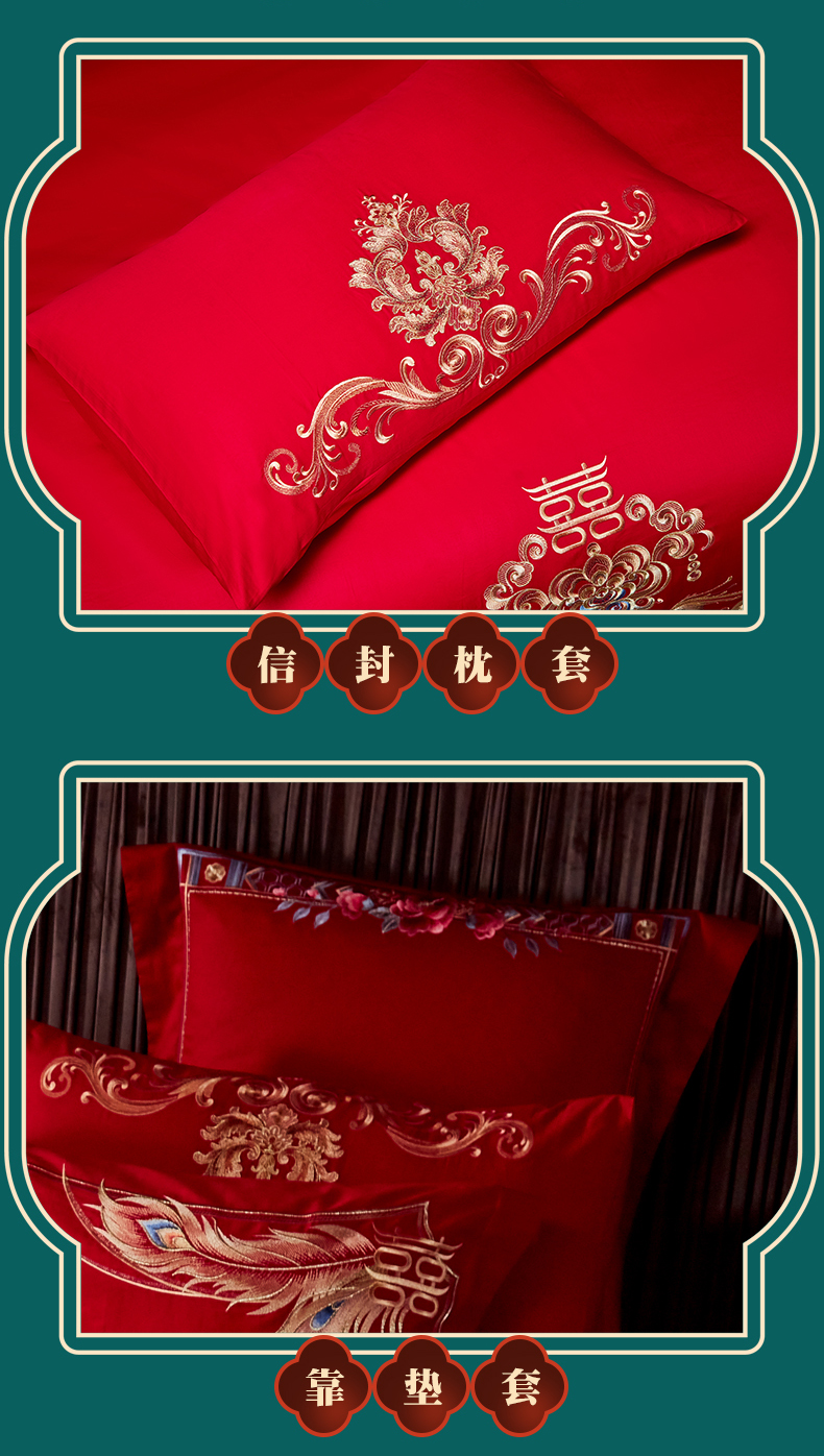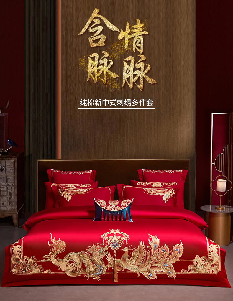 当前位置: 91家纺网 > 商品网购 > 床品套件 > 四件套 > 婚庆四件套 > 宏羽纺家纺 2024新款13372纯棉婚庆套件系列 含情脉脉