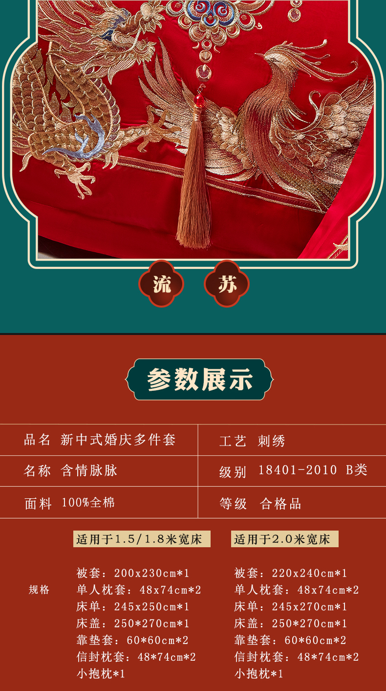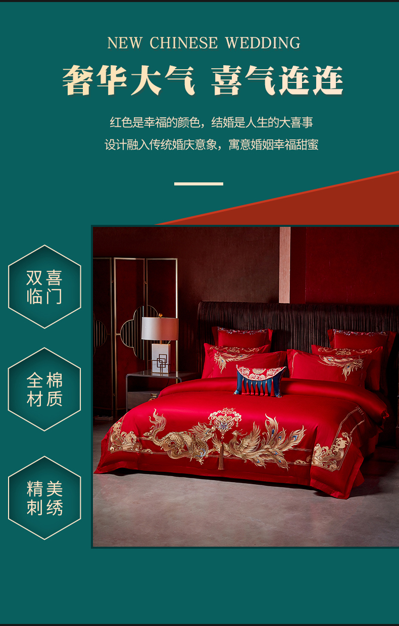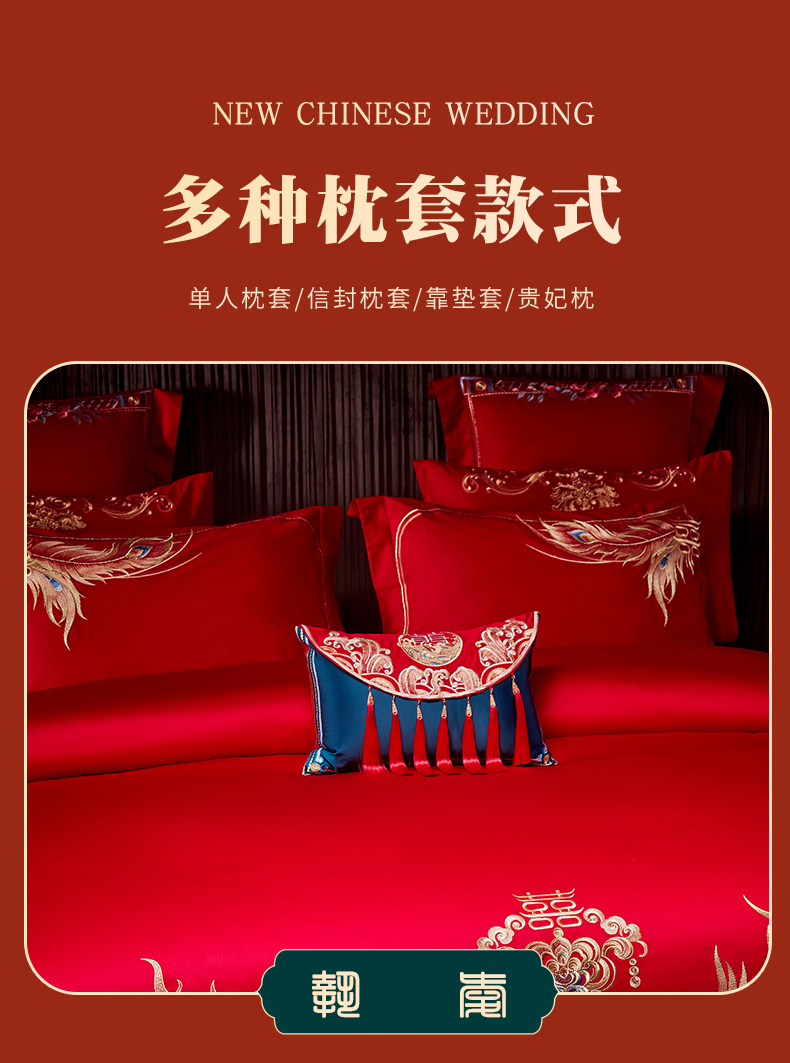 当前位置: 91家纺网 > 商品网购 > 床品套件 > 四件套 > 婚庆四件套 > 宏羽纺家纺 2024新款13372纯棉婚庆套件系列 含情脉脉