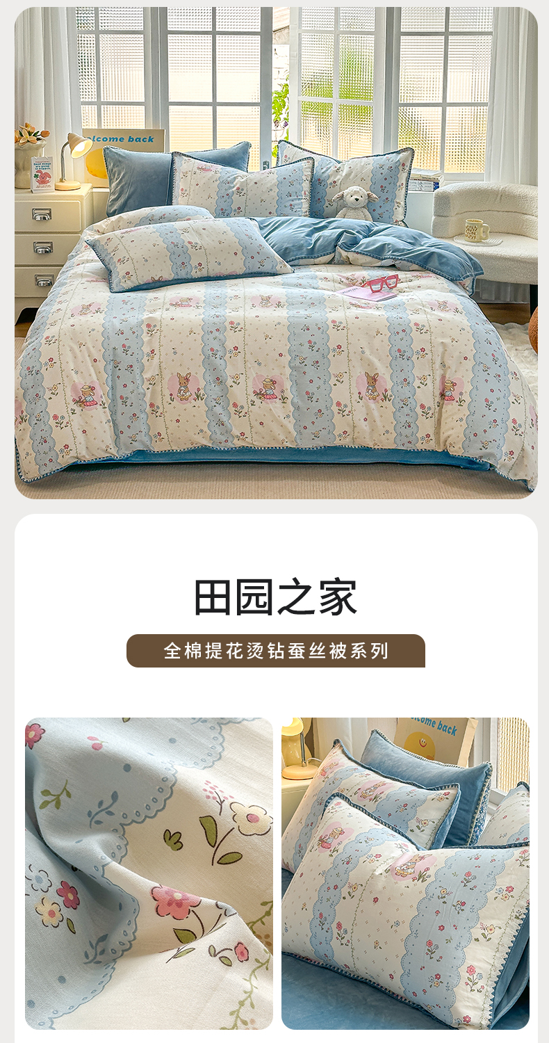 当前位置: 91家纺网 > 商品网购 > 床品套件 > 四件套 > 牛奶绒四件套 > 2025新款三角针贝壳边棉加牛奶绒工艺款四件套 田园之家