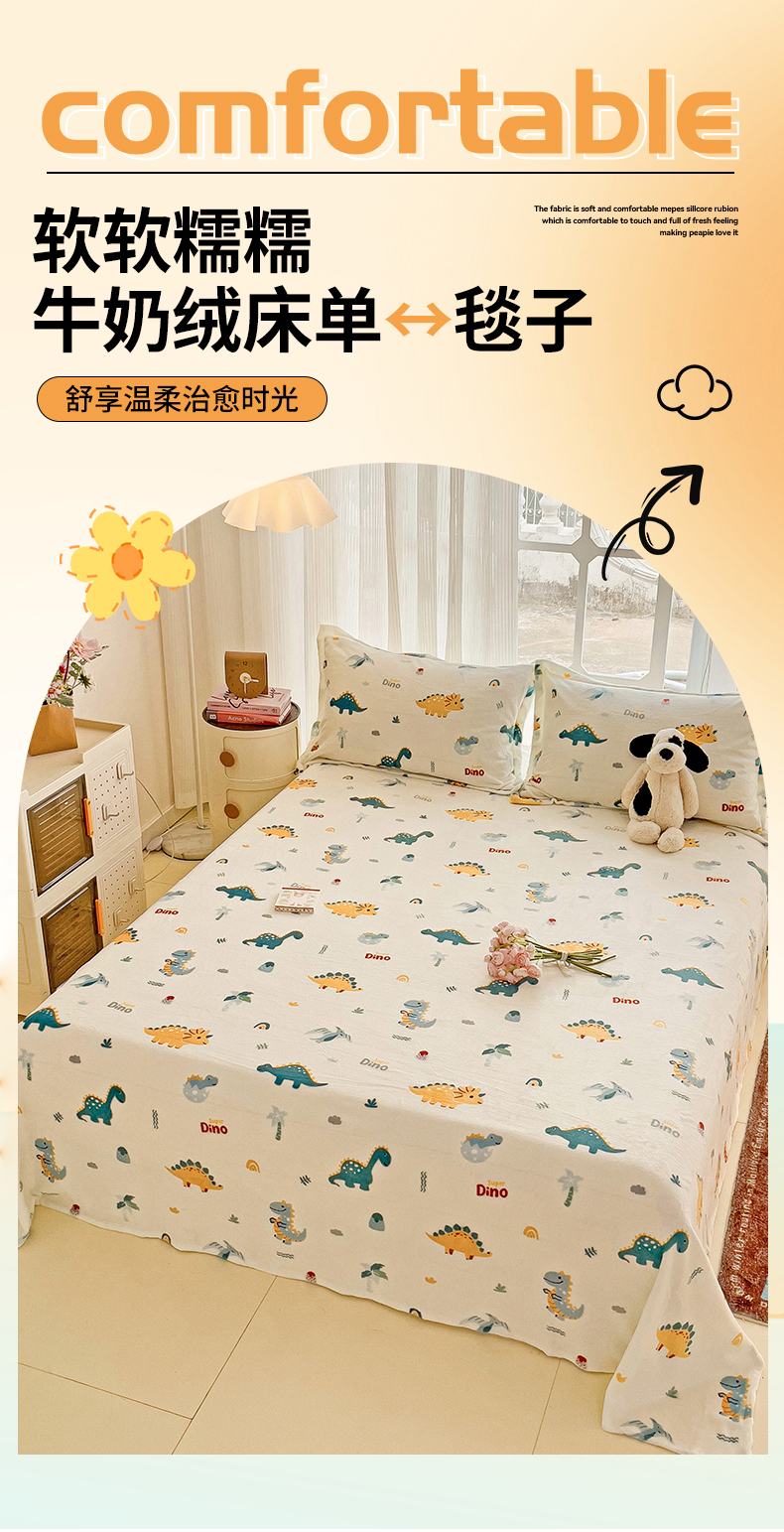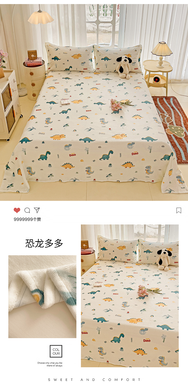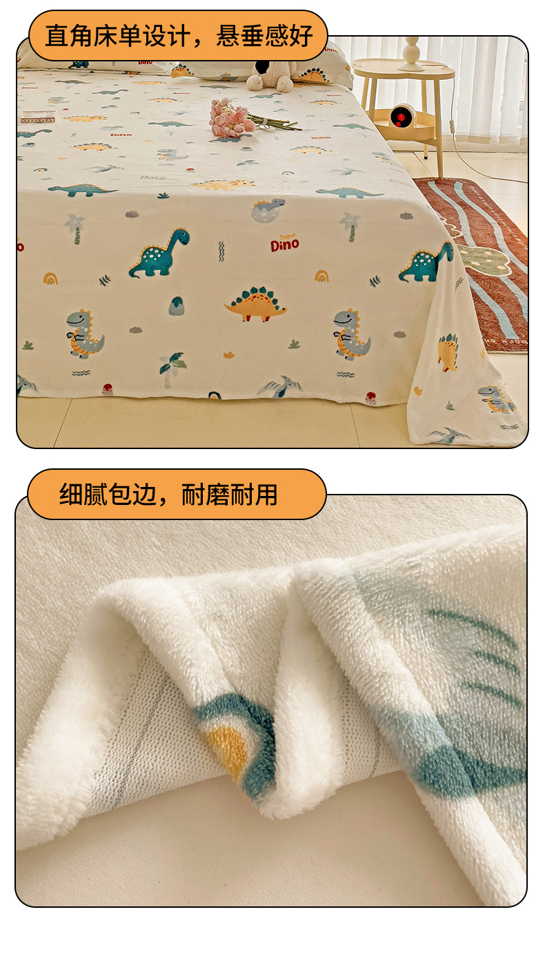 名兮家居 2024新款时尚卡通风高克重牛奶绒床单-盖毯 恐龙多多