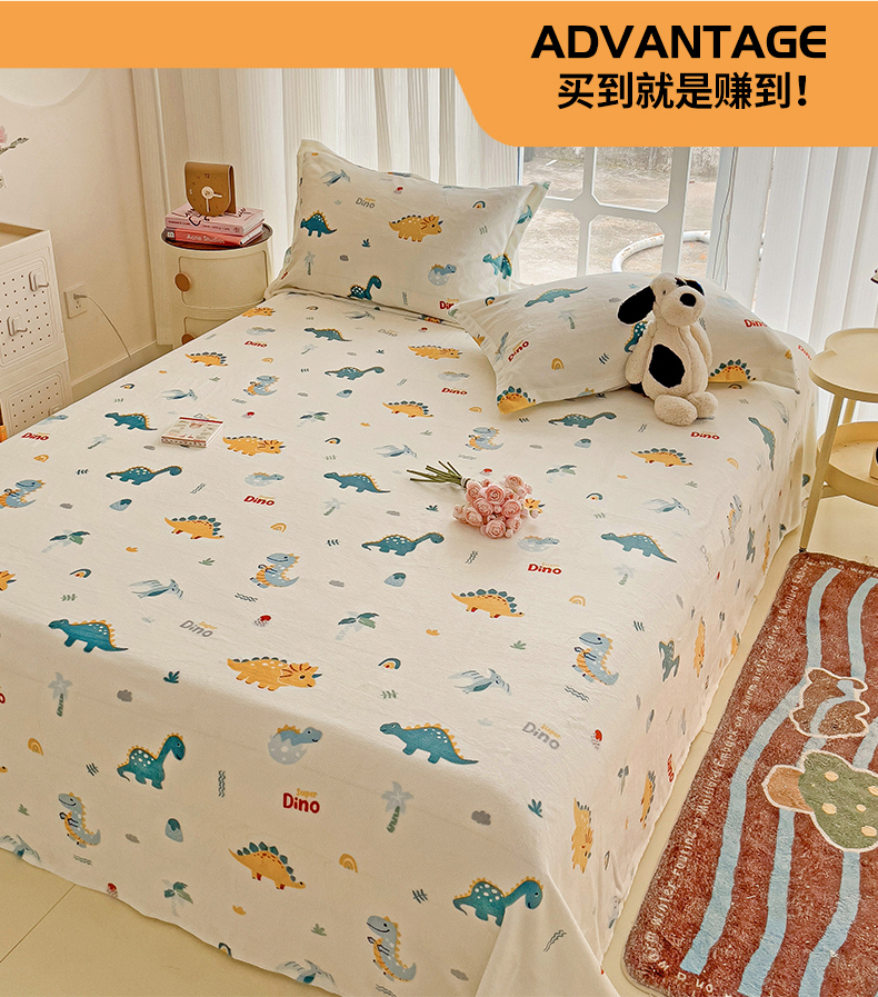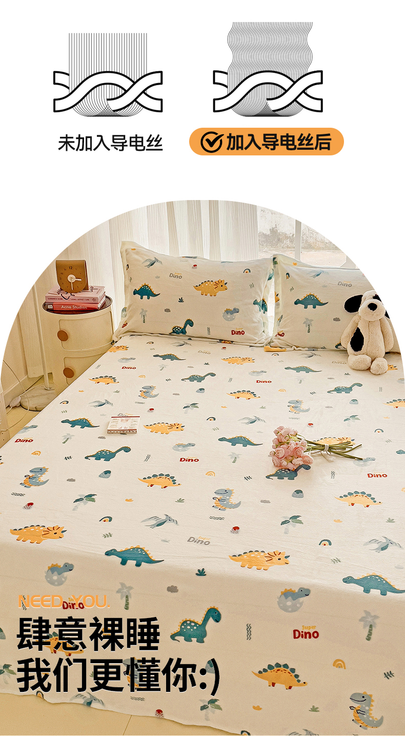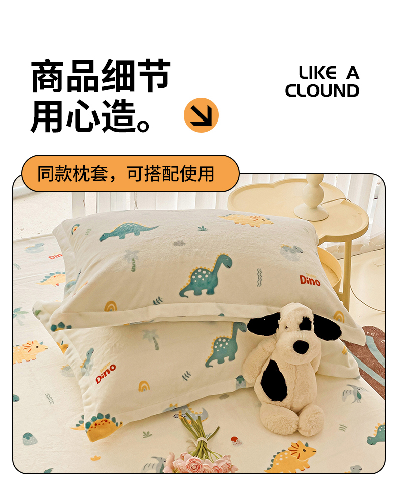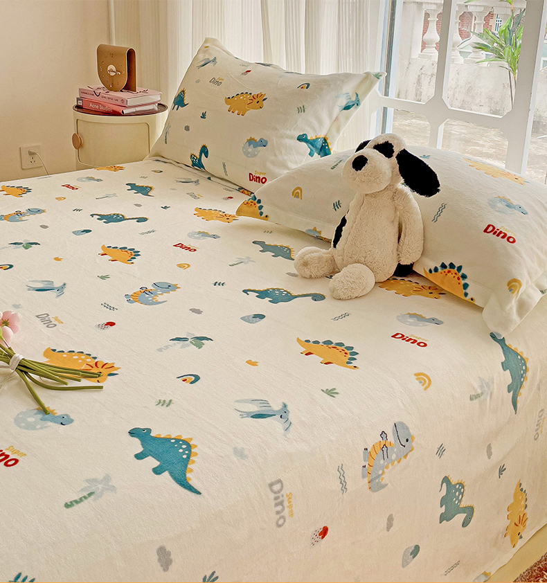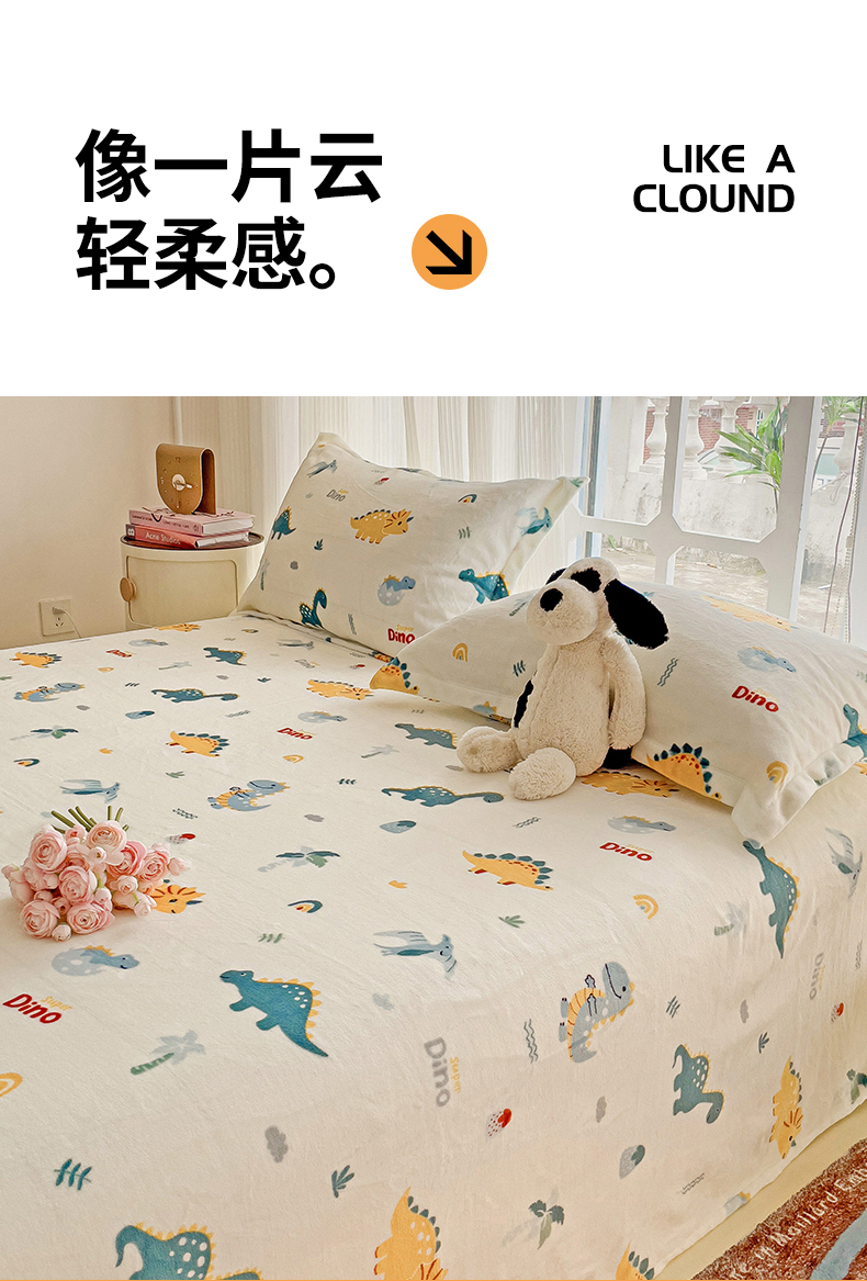 名兮家居 2024新款时尚卡通风高克重牛奶绒床单-盖毯 恐龙多多