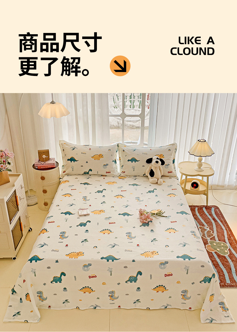 当前位置: 91家纺网 > 商品网购 > 床上用品 > 床单 > 名兮家居 2024新款时尚卡通风高克重牛奶绒床单-盖毯 恐龙多多