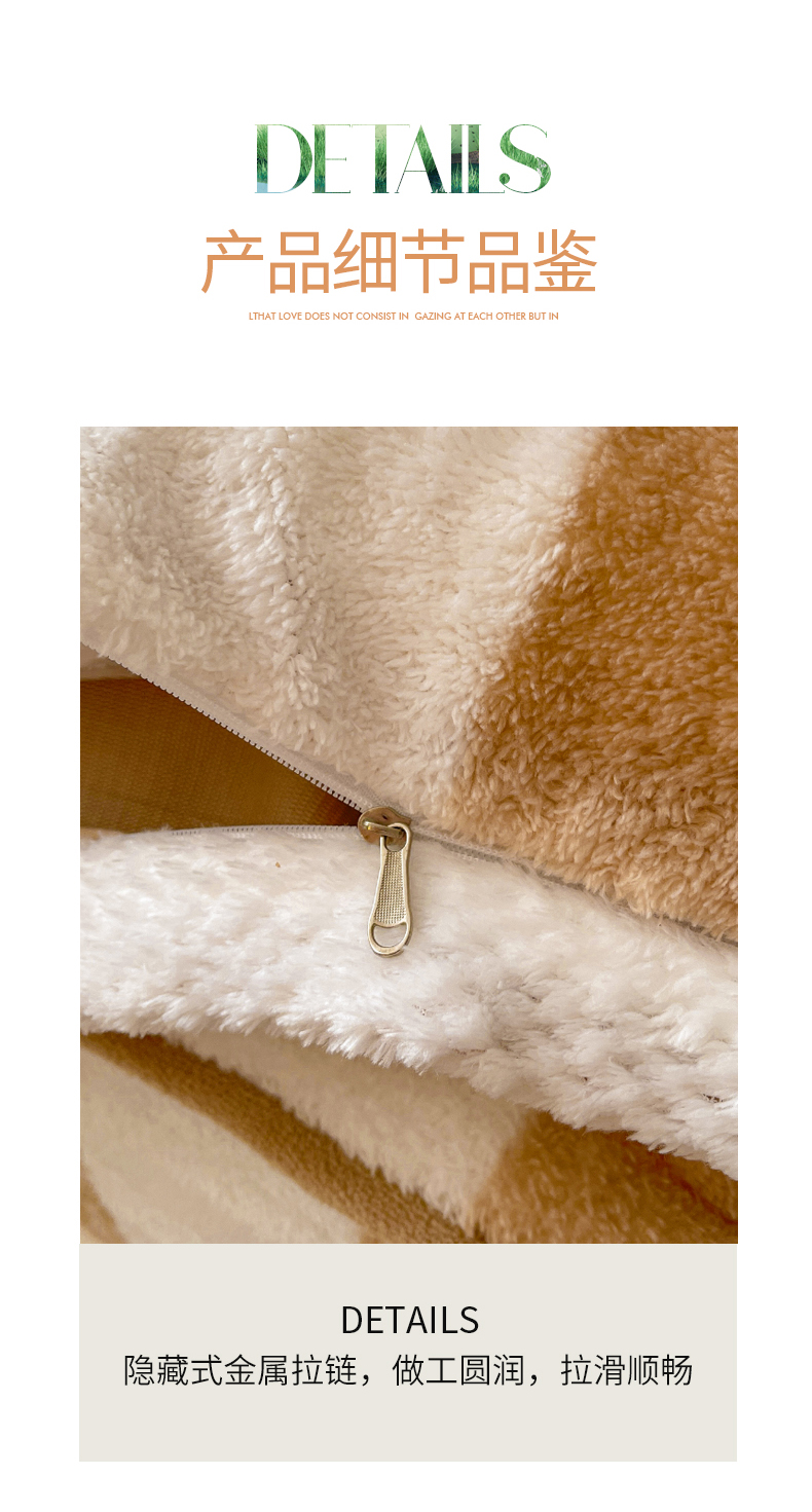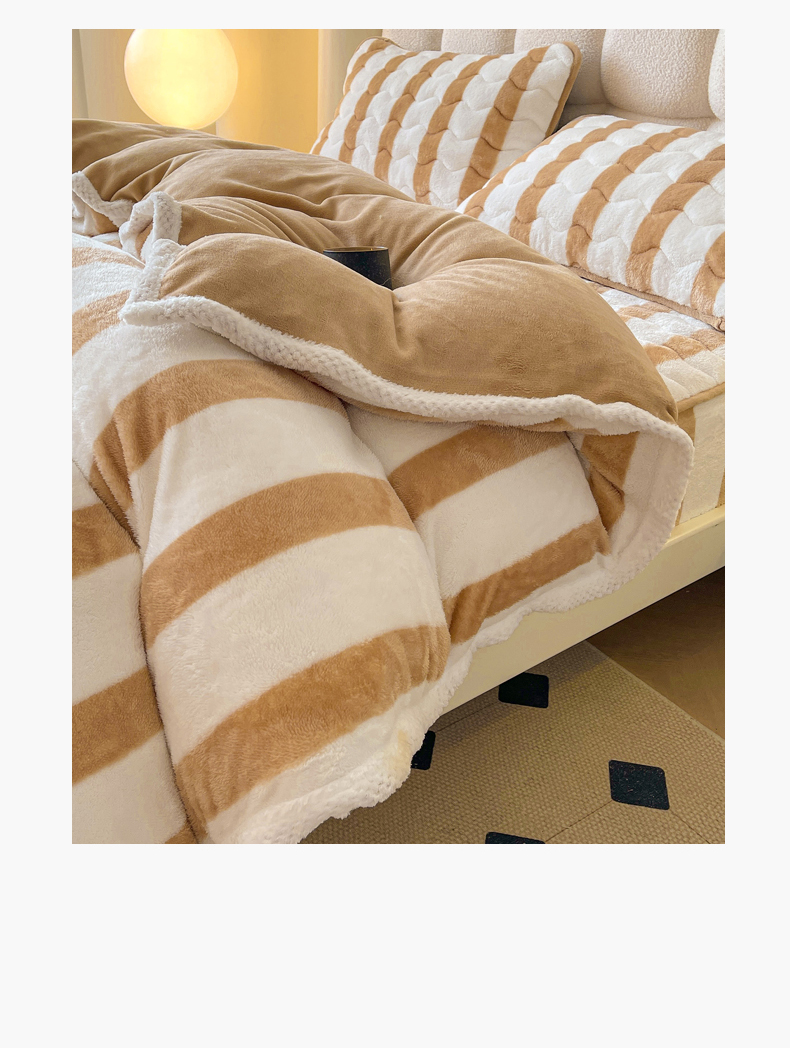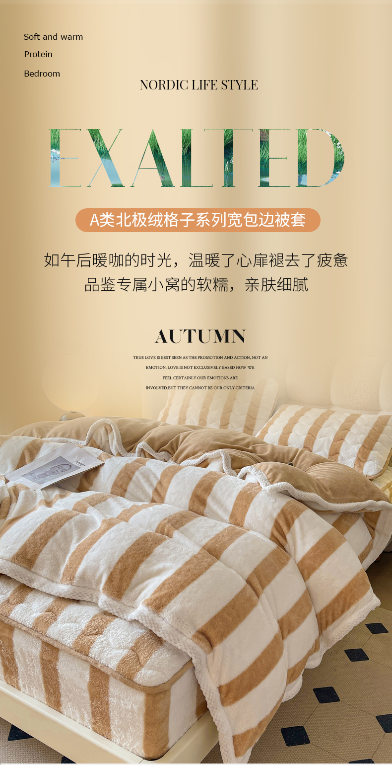 商品名称:2024新款A类北极绒格子-条纹系列宽包边加厚被套(暖光图) 条纹-奶咖
