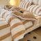2024新款A类北极绒格子-条纹系列宽包边加厚被套(暖光图) 条纹-奶咖
