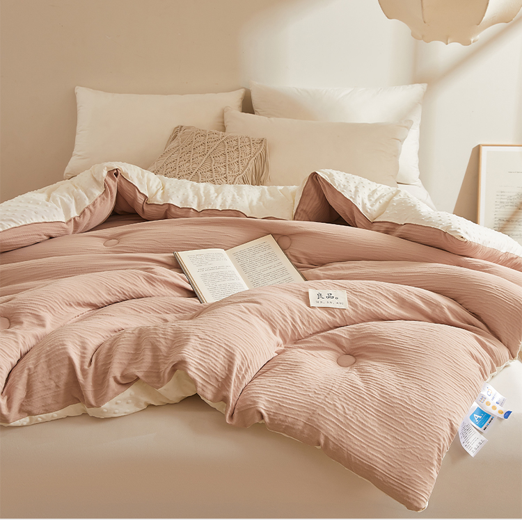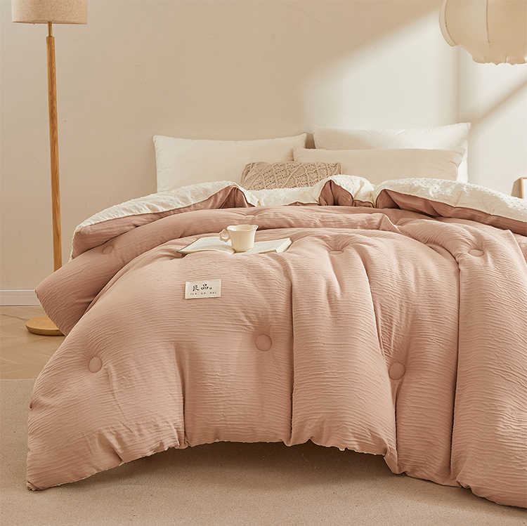 • 91家纺网 家纺一手货源 找家纺 2024新款A类双层皱皱纱豆豆被子被芯 皱皱纱-玫瑰粉