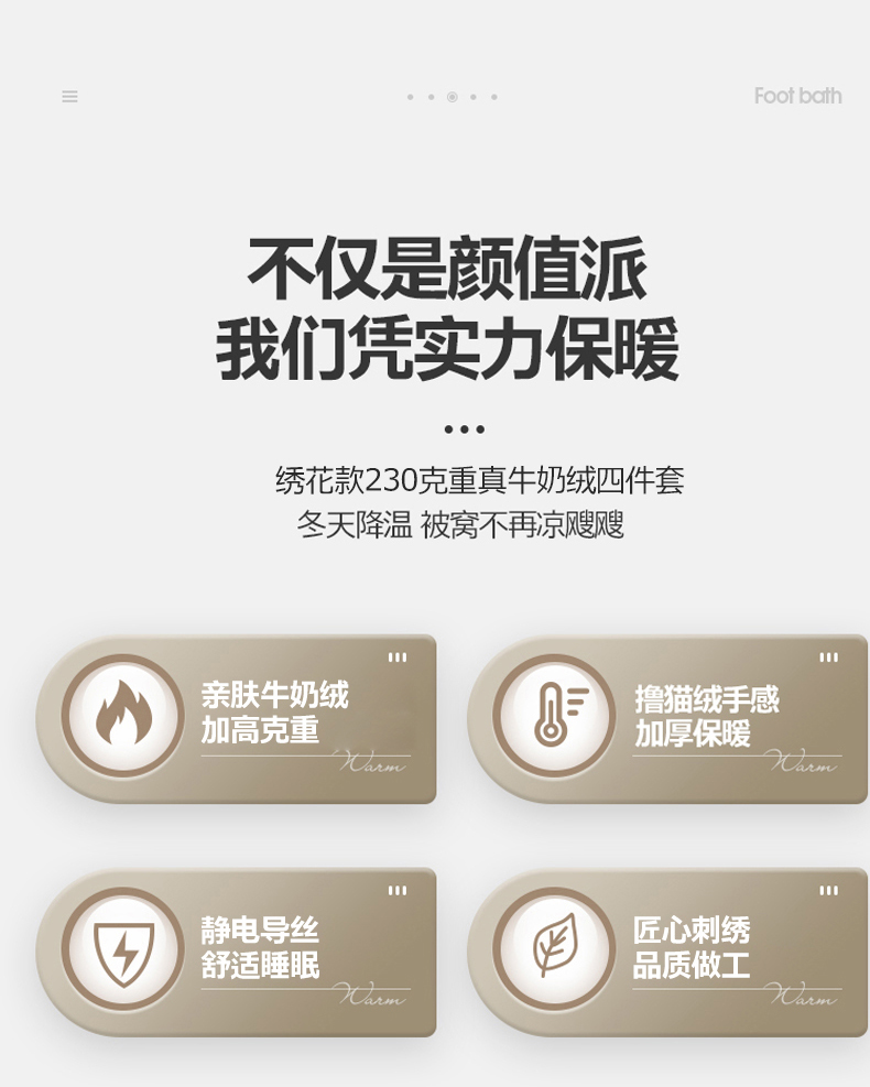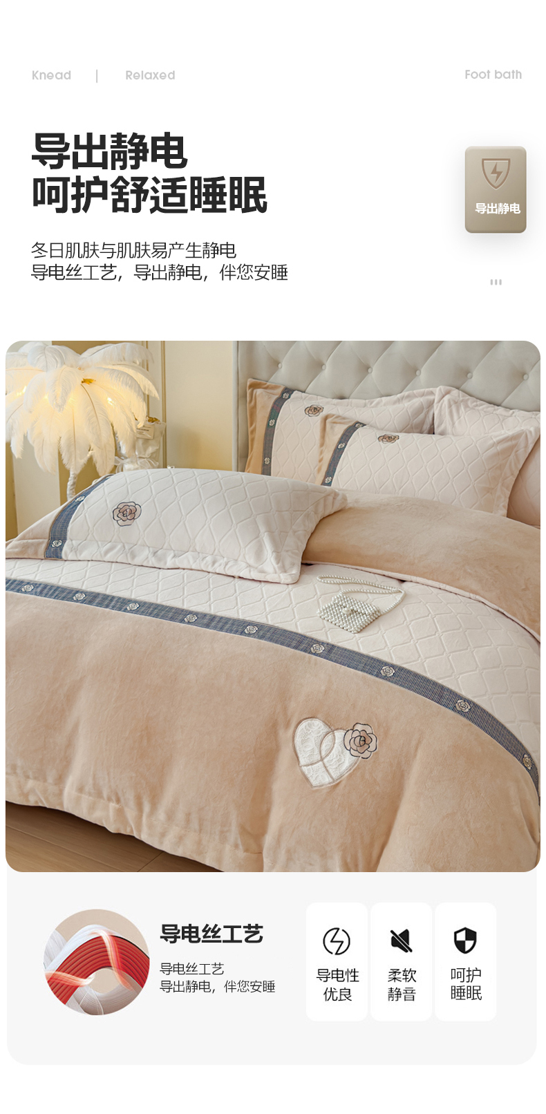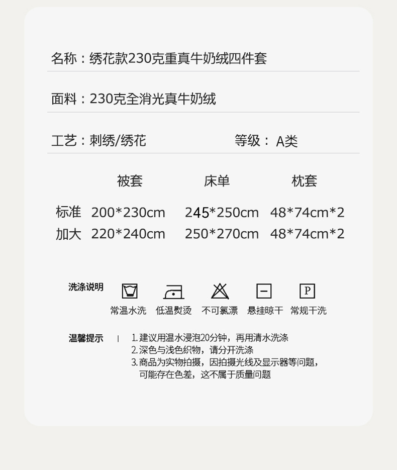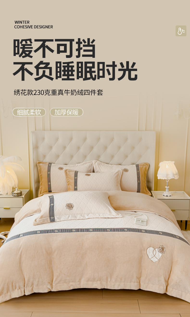 商品名称:木兰花 2024新款A类230克全消光5D雕花宽边牛奶绒床单款贴布绣花工艺四件套(控价268起) 柚见山茶 -象牙白