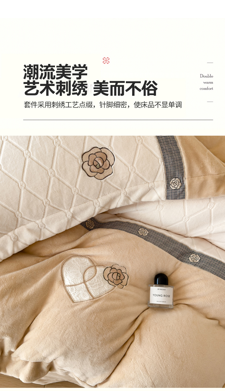(总)木兰花 2025新款纯色雕花全消光牛奶绒 床盖款四件套-玫瑰花园系列,玫瑰花园 粉玉,玫瑰花园 香草绿,玫瑰花园 香芋紫,玫瑰花园 胭脂粉