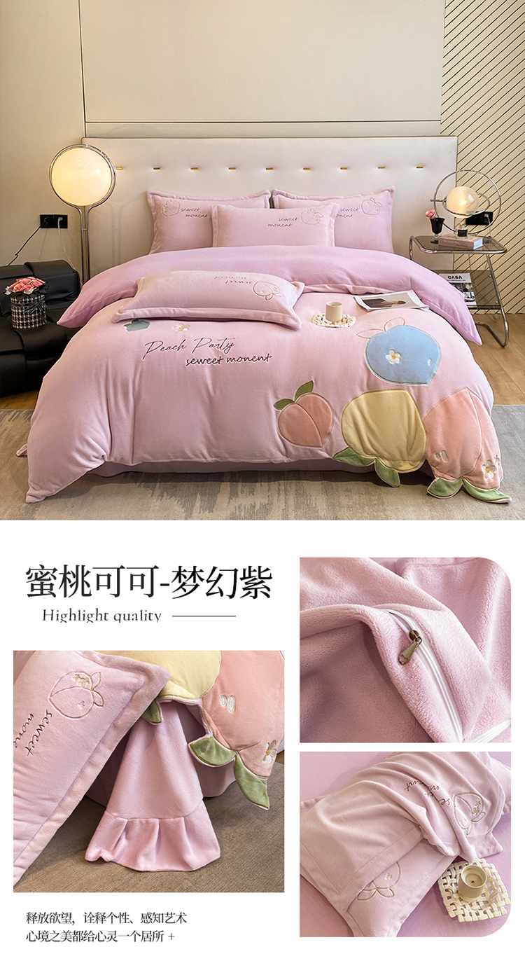 爱家(原缔乐家纺) 牛奶绒贴布绣四件套-蜜桃可可 蜜桃可可-梦幻紫