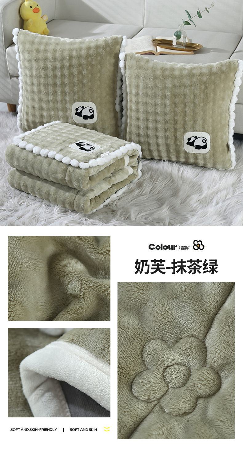 商品名称:伊可爱抱枕被 2024新款秋冬仿兔毛泡泡牛奶绒泡泡夹棉多针绗绣抱枕被毯-奶芙抱枕被 奶芙-墨蓝色