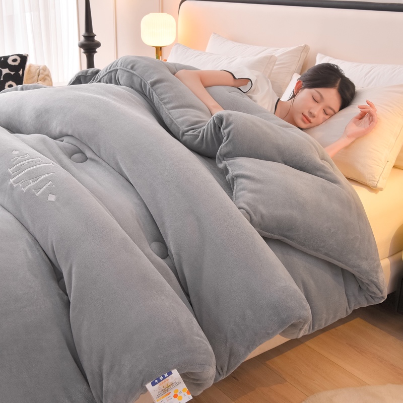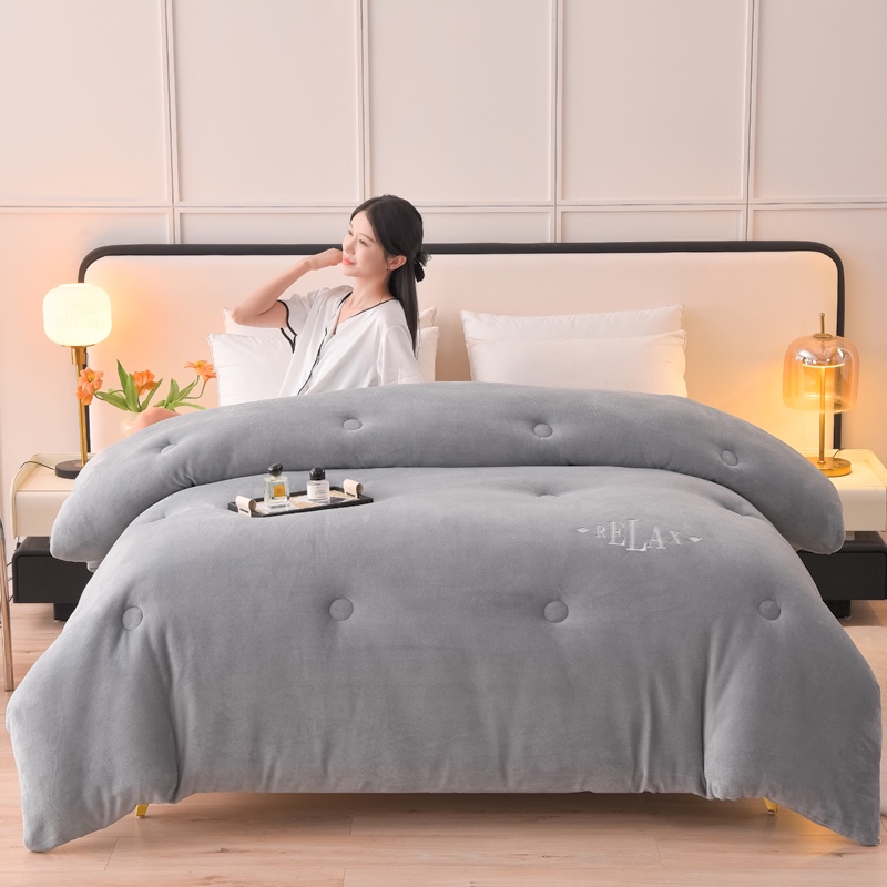 商品名称:牛魔王家居 2024新款加厚牛奶绒绣花冬被春秋被大豆被被子 牛奶绒+气质灰