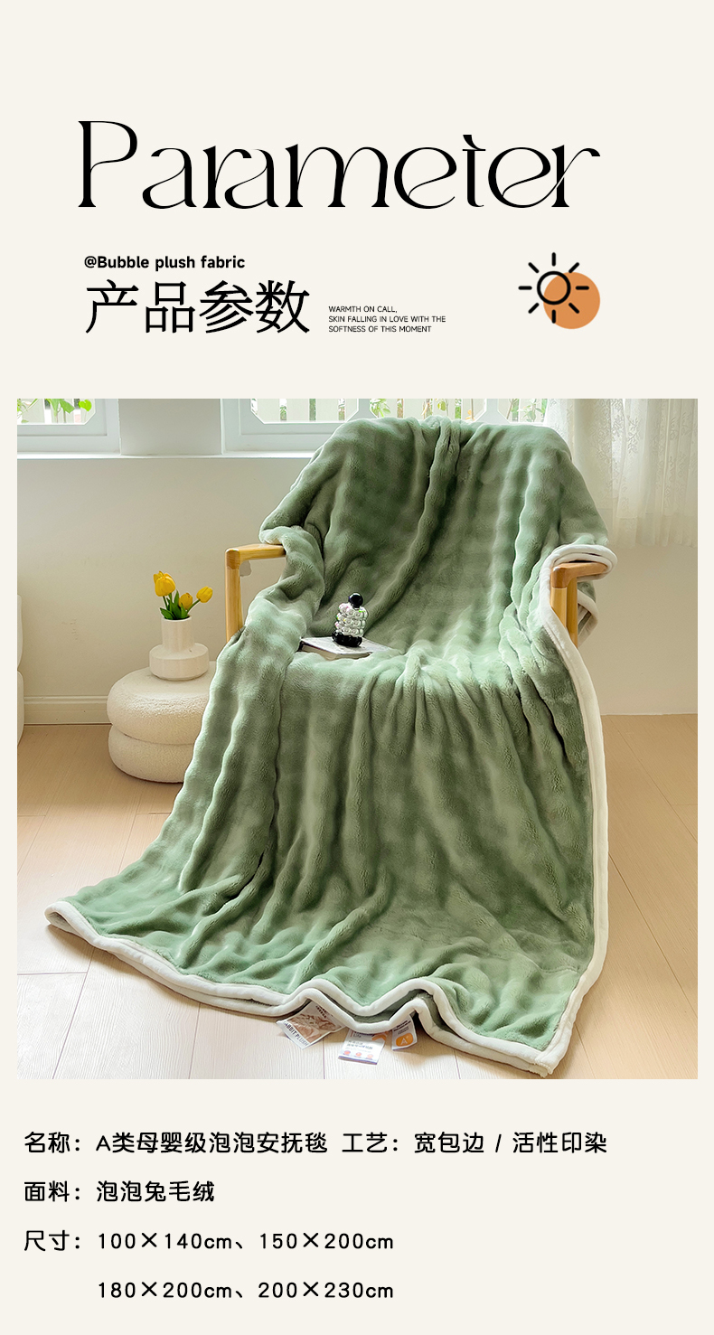 商品名称:优选良品 2025新款托卡斯母婴级兔兔绒大泡泡毛毯安抚四季床盖双面牛奶绒床单 泡泡兔毛绒-奶绿