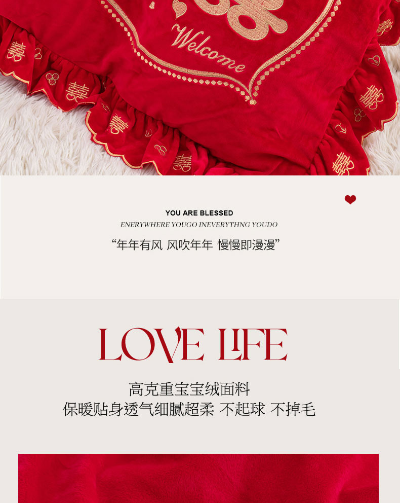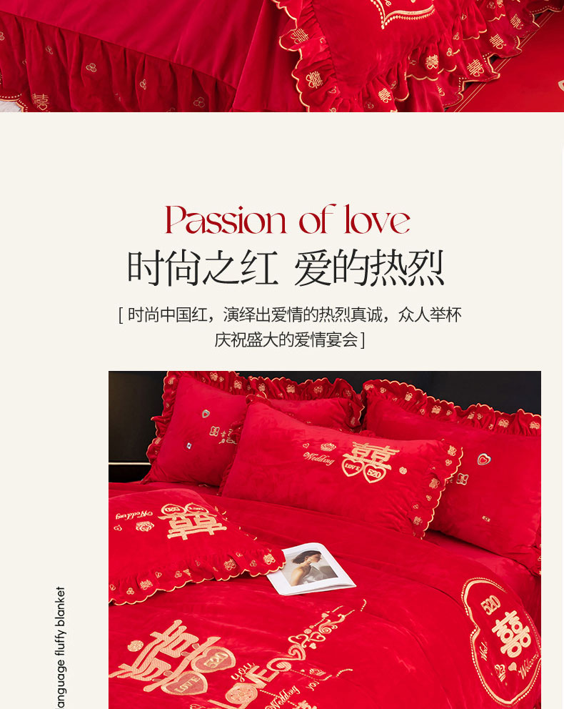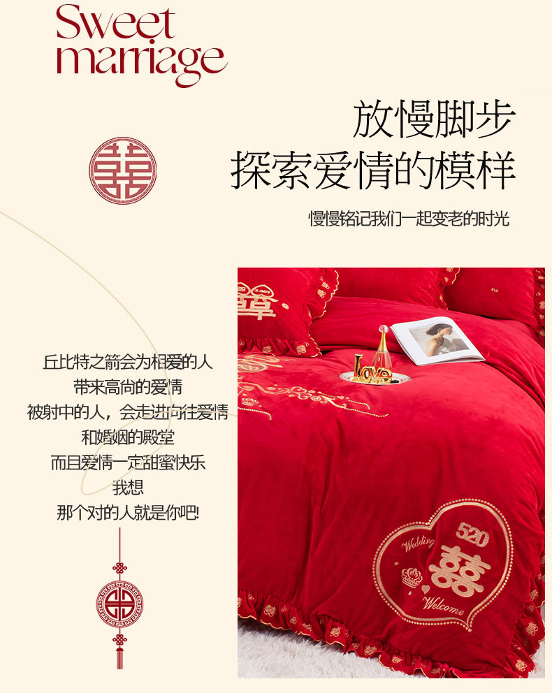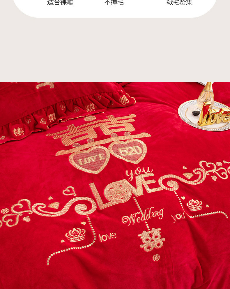 商品名称:蒂爵 全棉纯棉抗静电宝宝绒婚庆绣花四件套 心动时刻