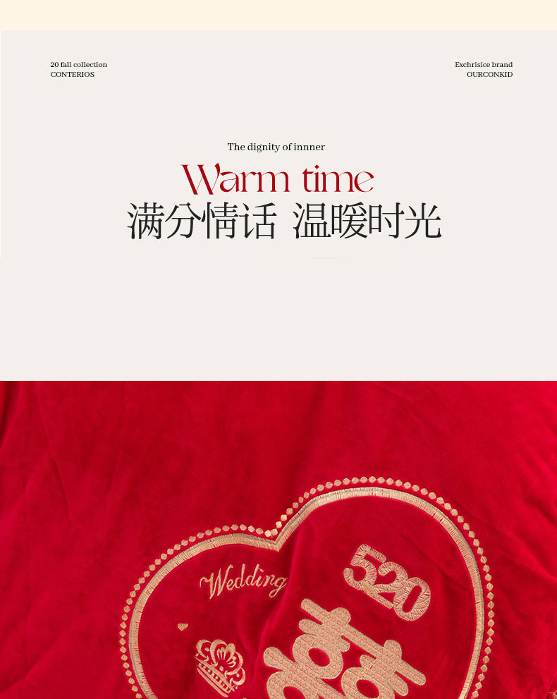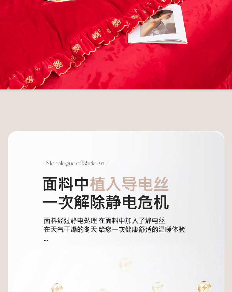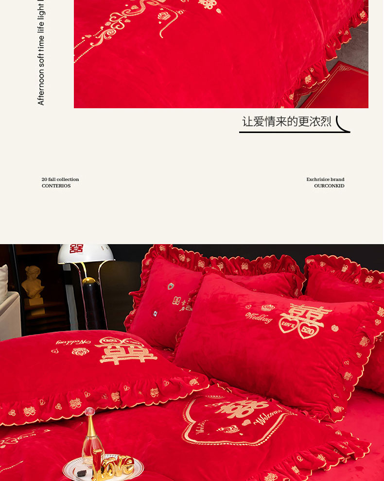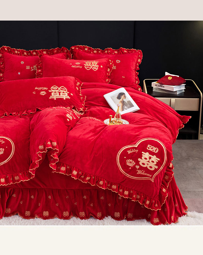 商品名称:蒂爵 全棉纯棉抗静电宝宝绒婚庆绣花四件套 心动时刻