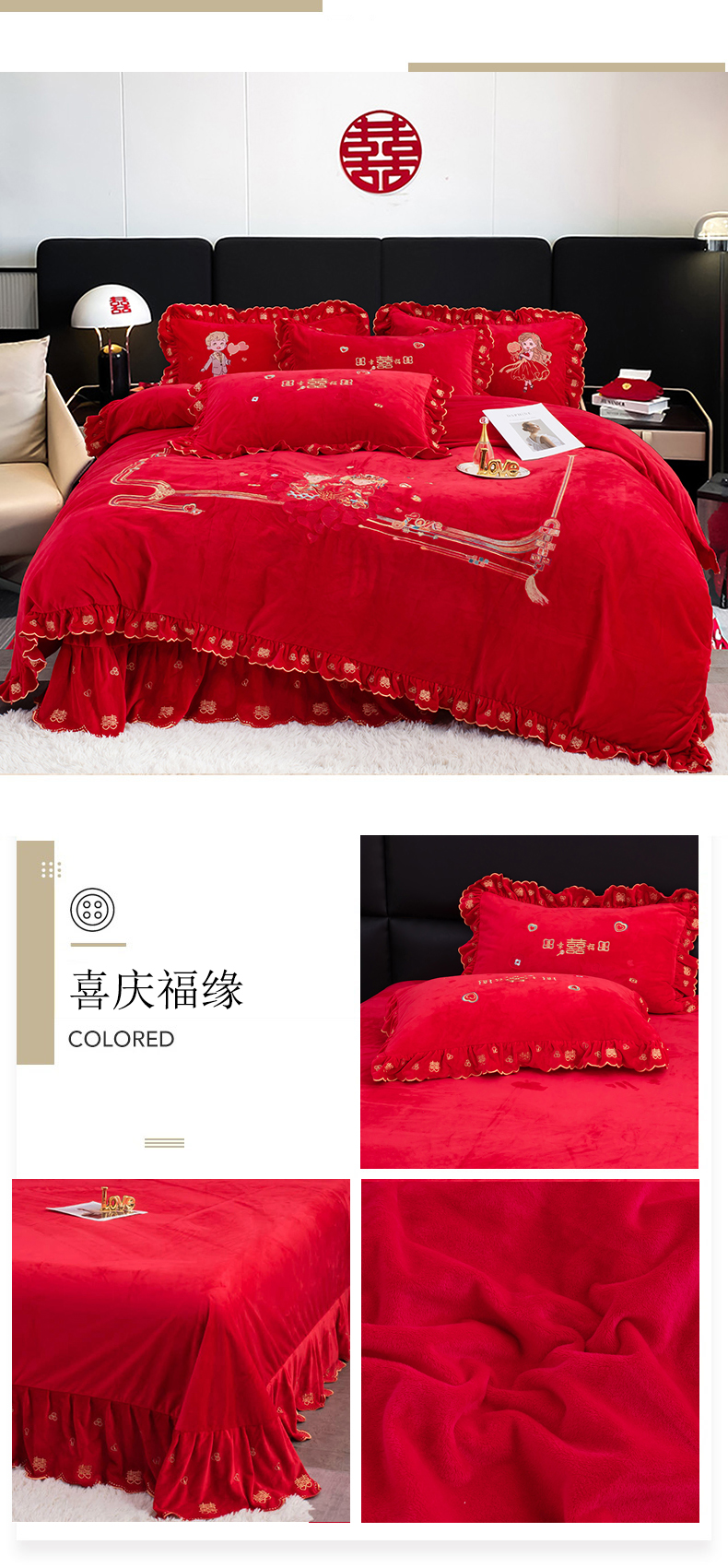 (总)蒂爵 2025新款婚庆长绒棉时尚小红书爆款刺绣婚庆四件套多件套,繁花似锦,天降喜缘,喜嫁,幸福良辰