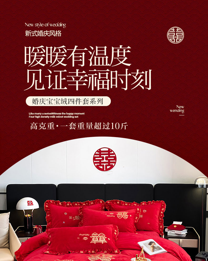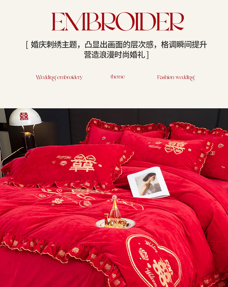 (总)蒂爵 2025新款婚庆长绒棉时尚小红书爆款刺绣婚庆四件套多件套-提花款,欢天喜地,玫瑰之恋,喜福临门,喜上眉梢,幸福嫁到