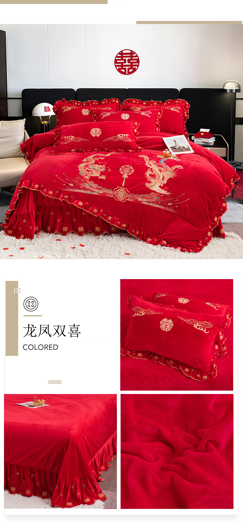 (总)蒂爵 全棉纯棉提花顶奢重工绣花工艺款婚庆四件套多件套,龙凤传奇,禧龙禧凤,缘定江山,挚爱一生