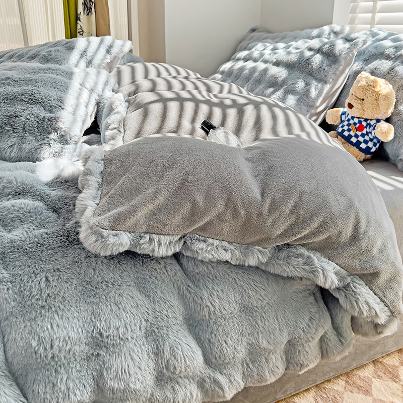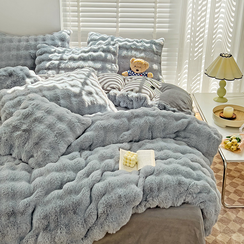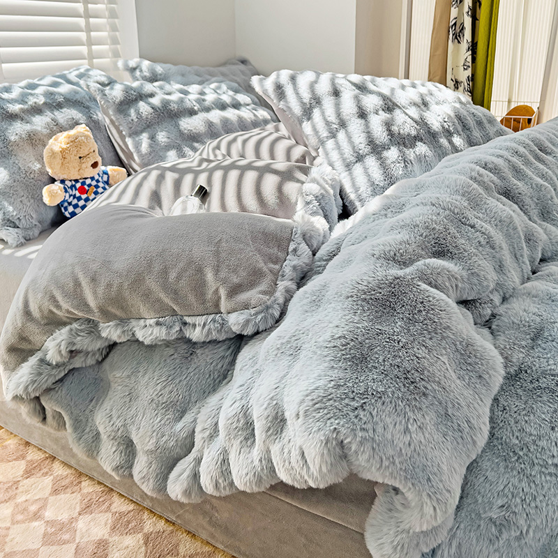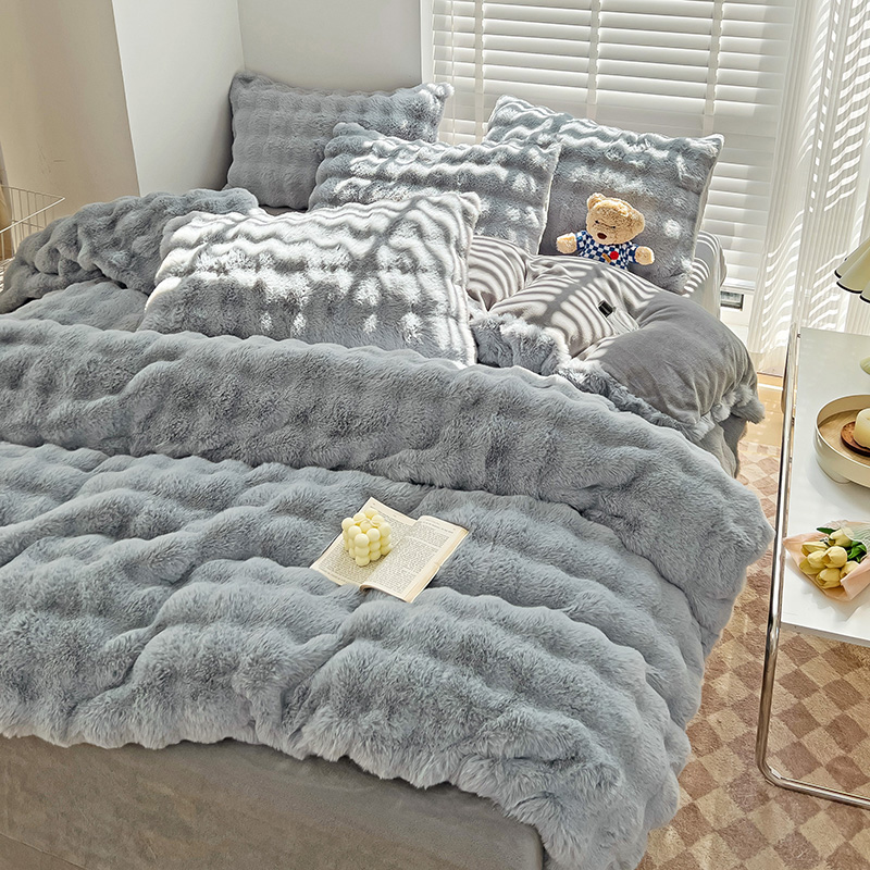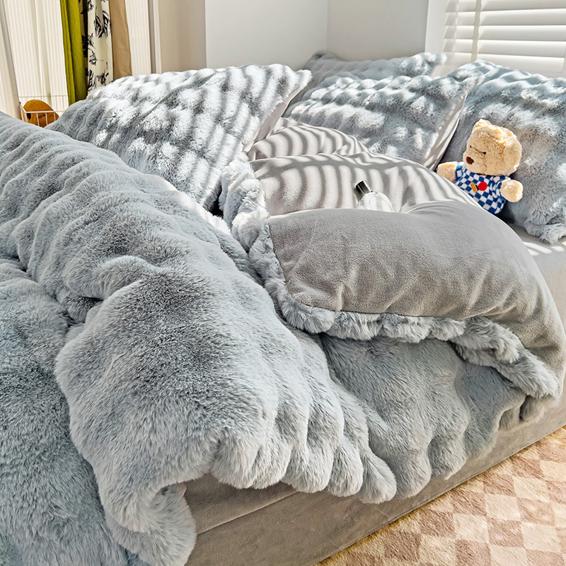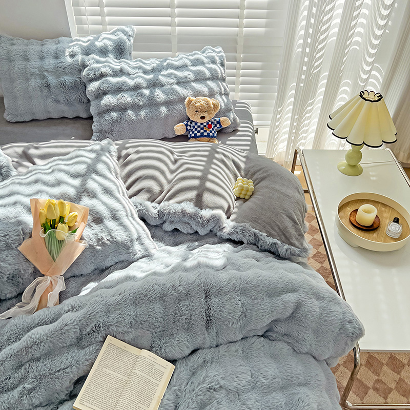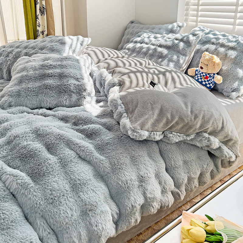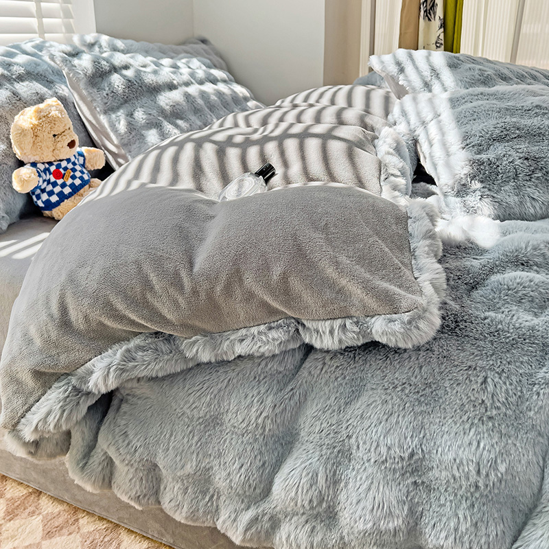 商品名称:畅畅家纺 2024新款AB版冬季纯色七彩兔兔绒兔毛绒牛奶绒四件套 高级灰
