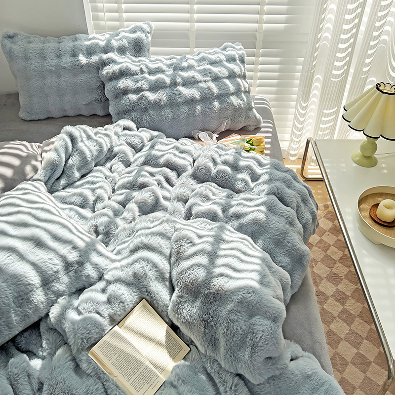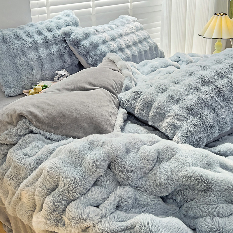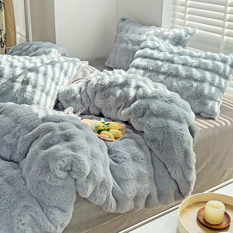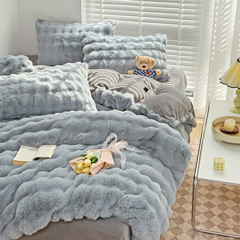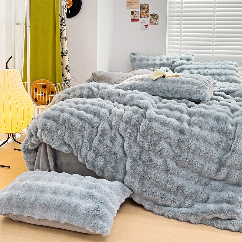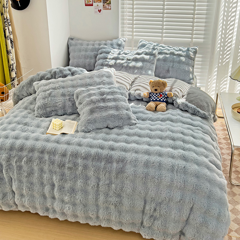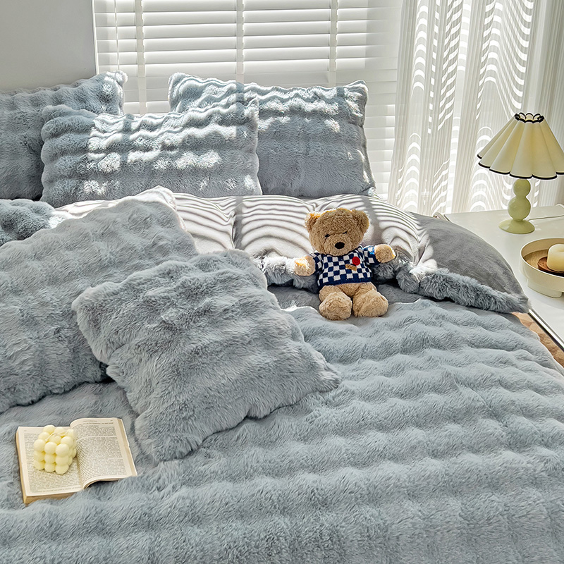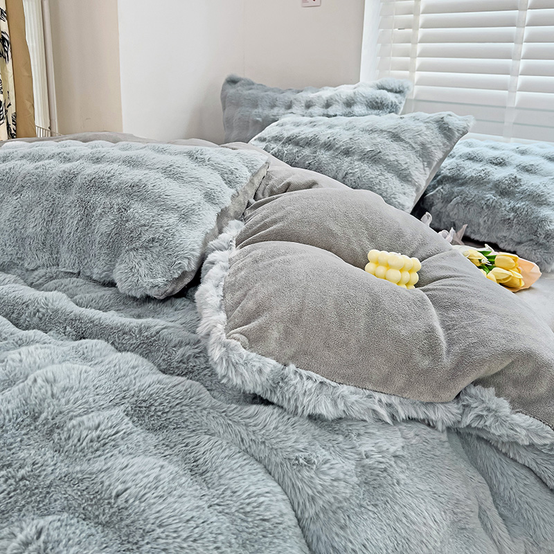 商品名称:畅畅家纺 2024新款AB版冬季纯色七彩兔兔绒兔毛绒牛奶绒四件套 高级灰