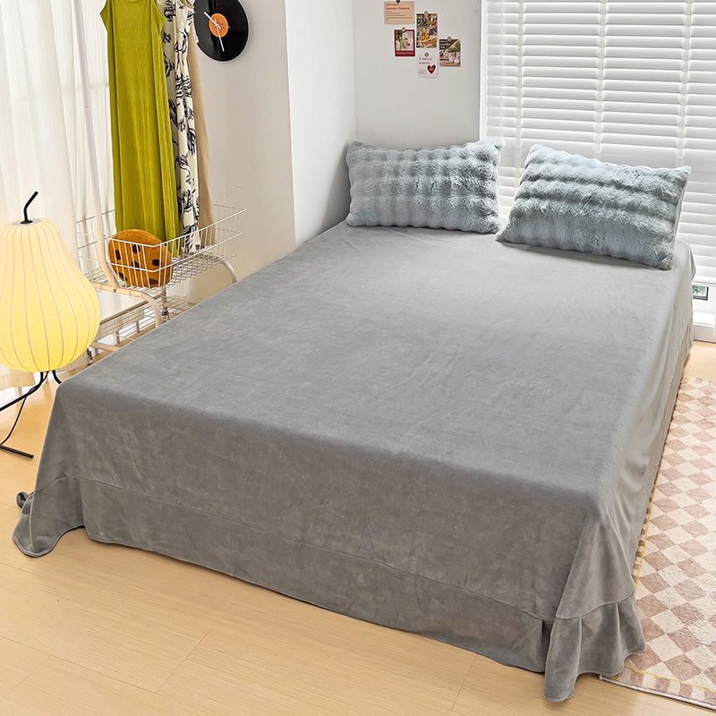 (总)畅畅家纺 2024新款高克重加厚保暖冬季牛奶绒纯色床盖款四件套,豆沙,灰色,天蓝,玉色,中国红