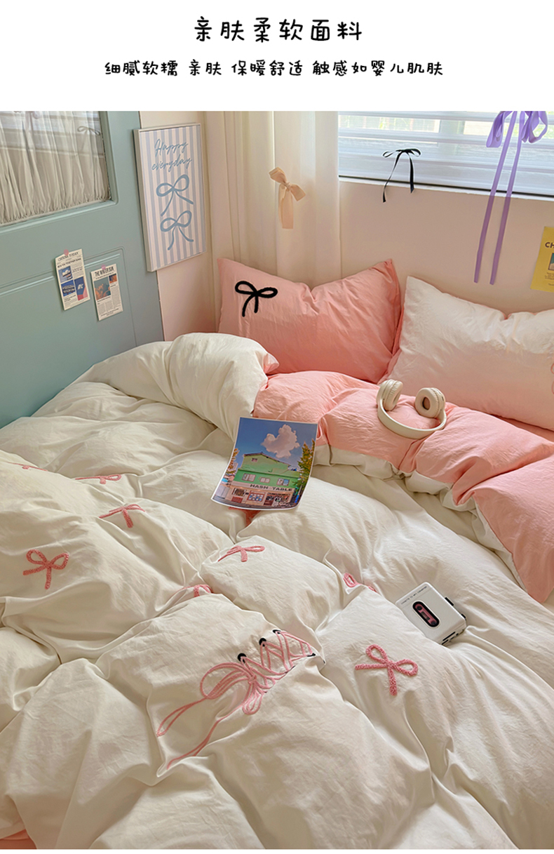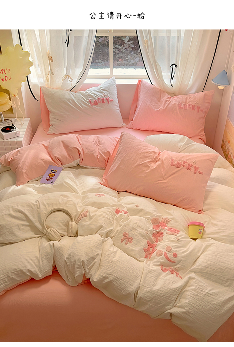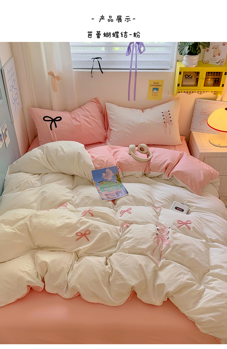 当前位置: 91家纺网 > 商品网购 > 床品套件 > 四件套 > 水洗棉四件套 > 阿曼达 2024新款ins博主风爆款超甜美甜酷的毛巾绣水洗m四件套-公主请开心 芭蕾蝴蝶结-粉