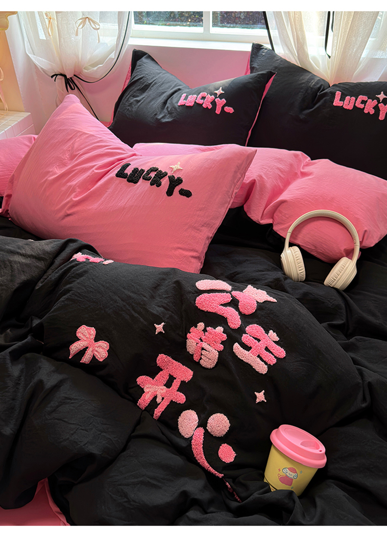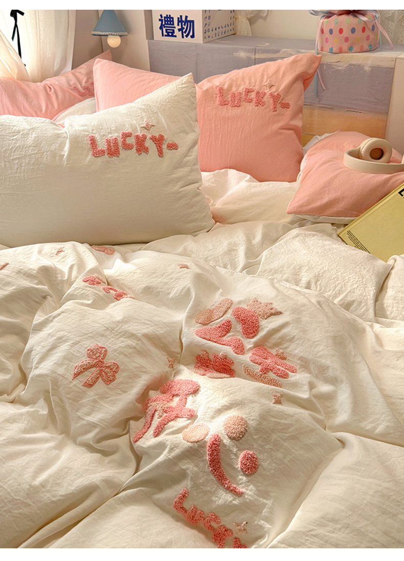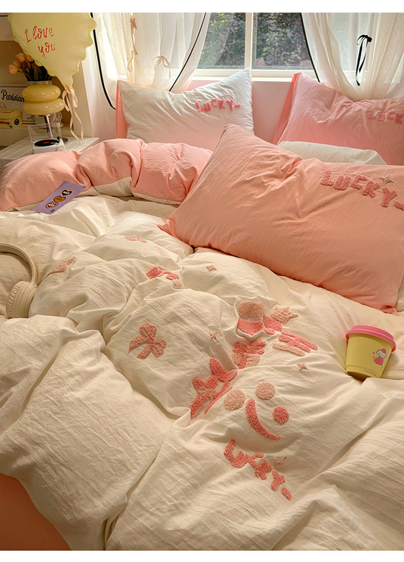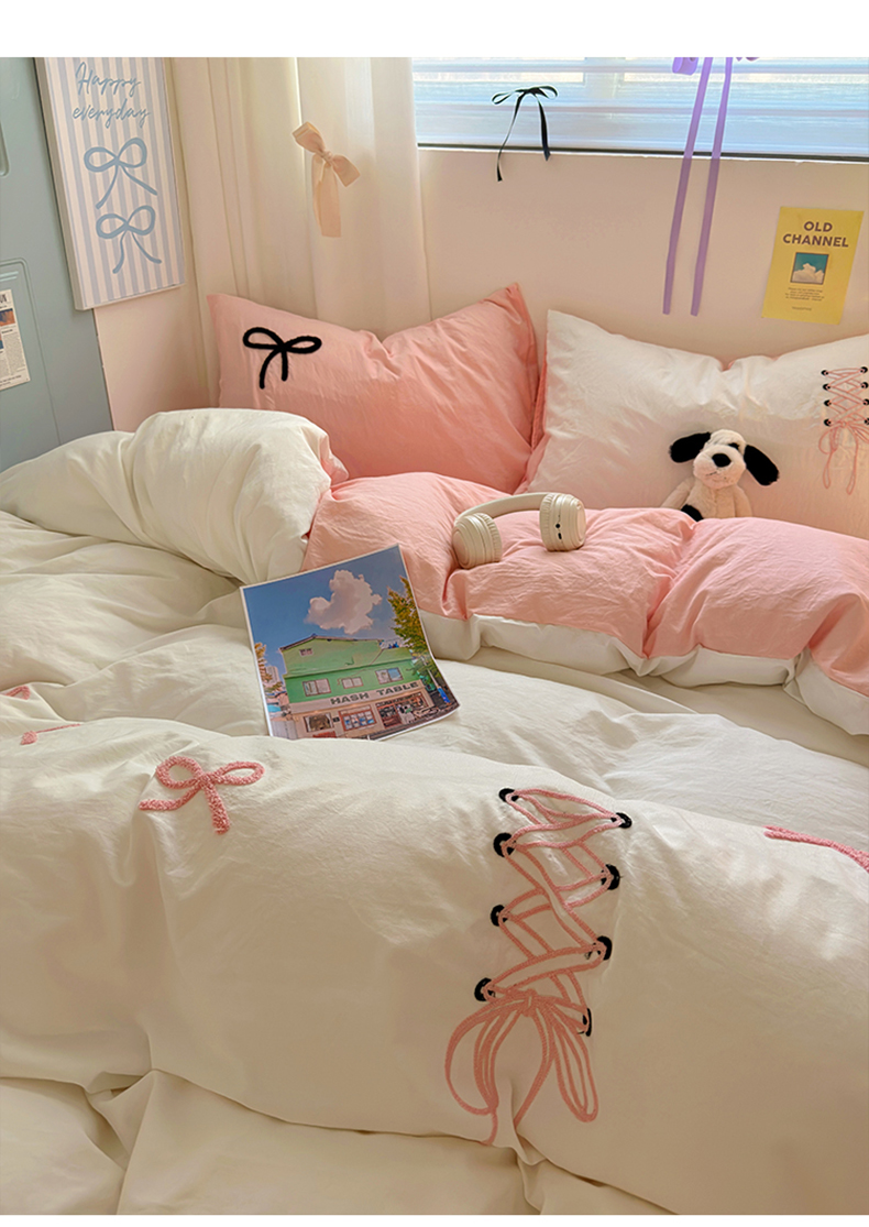当前位置: 91家纺网 > 商品网购 > 床品套件 > 四件套 > 水洗棉四件套 > 阿曼达 2024新款ins博主风爆款超甜美甜酷的毛巾绣水洗m四件套-公主请开心 芭蕾蝴蝶结-粉