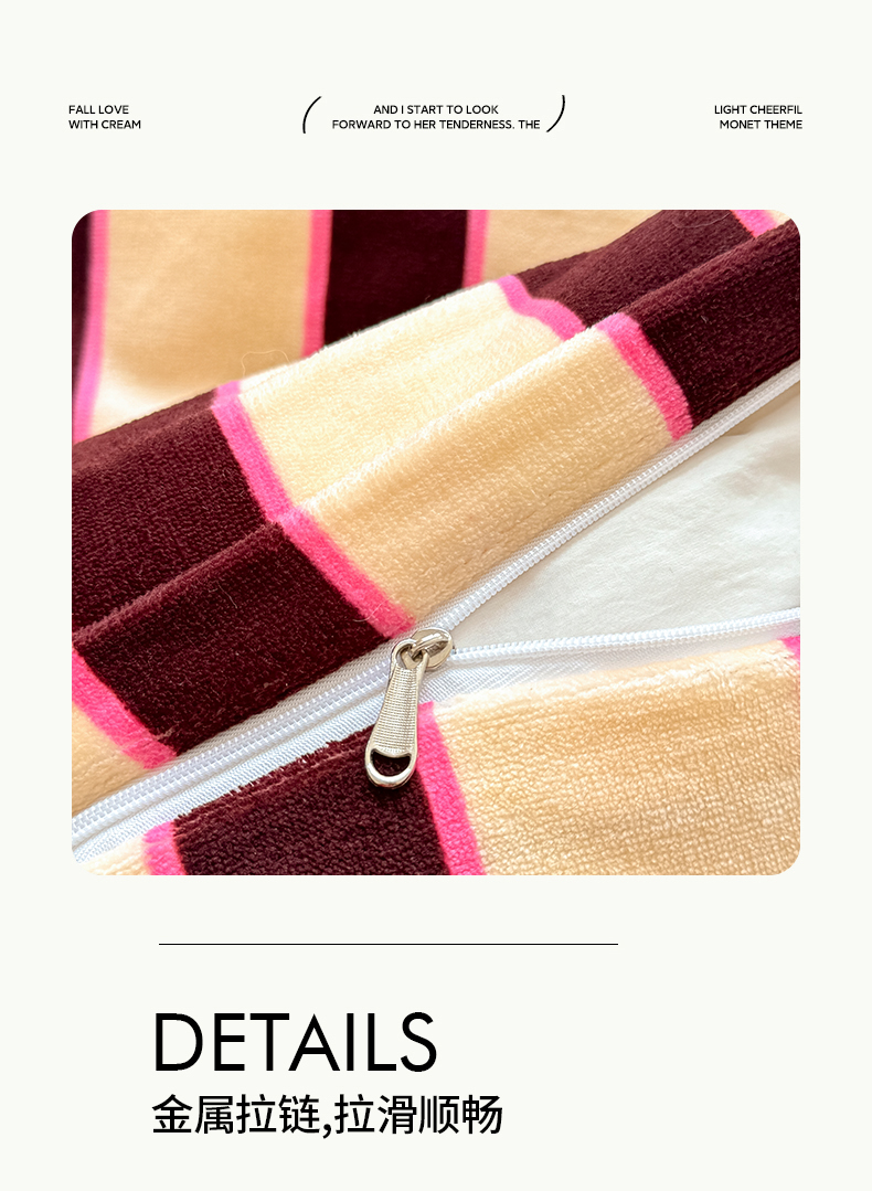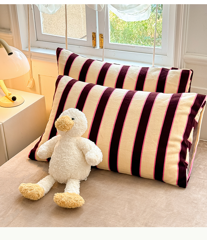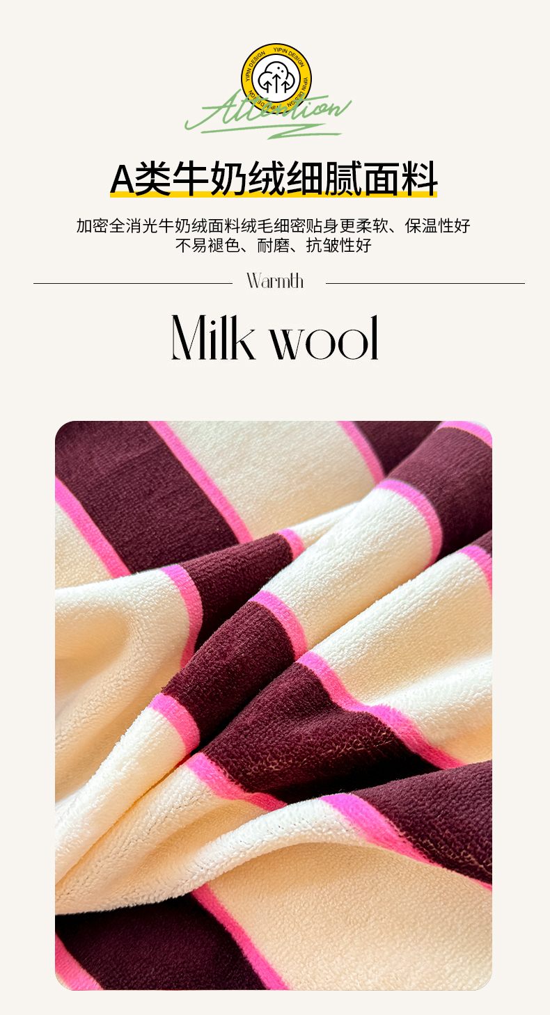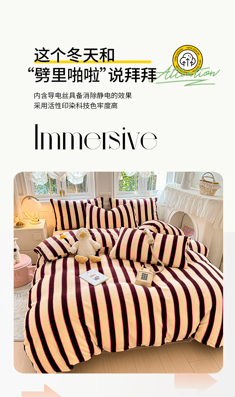 商品名称:红粉佳人 2025新款小清新双面牛奶绒四件套条纹咖