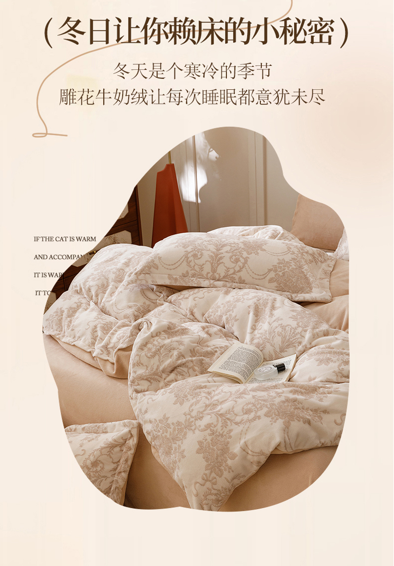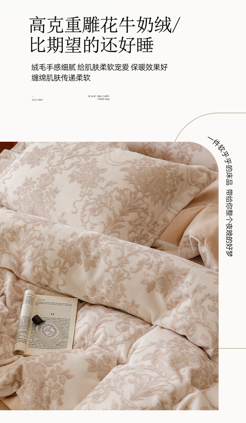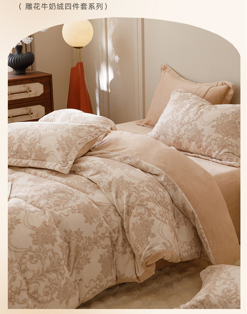 卡派 2024新款轻奢肌理纹雕花工艺款230克加厚牛奶绒四件套(提供买家秀 ) 婉然-咖
