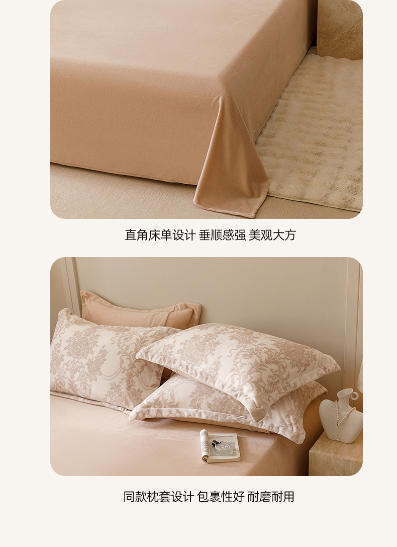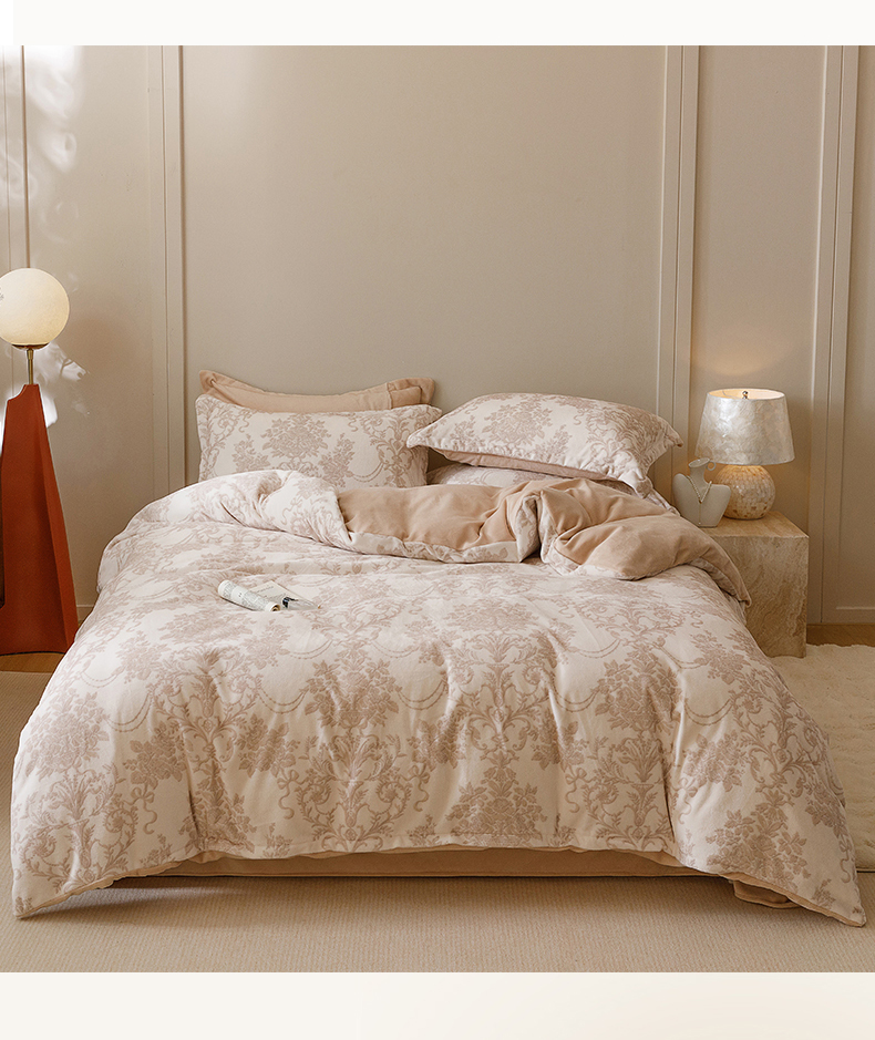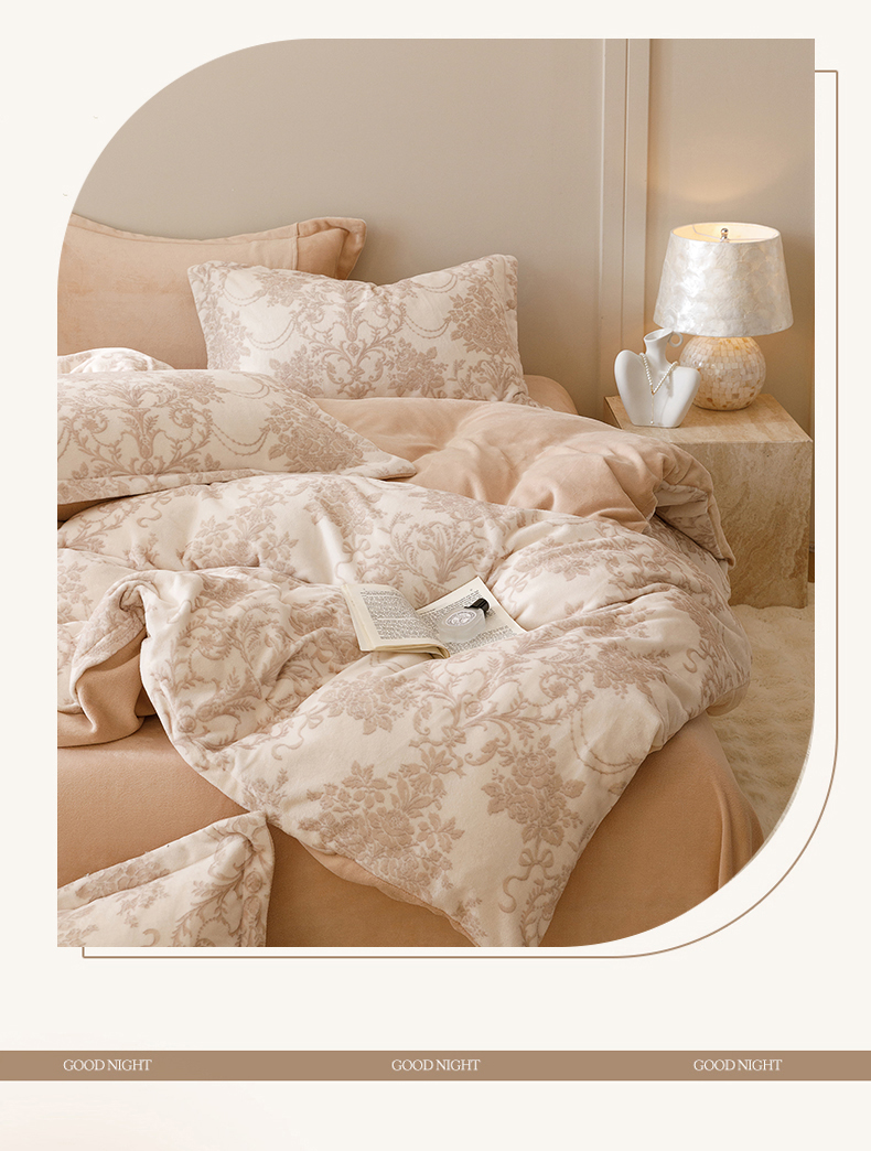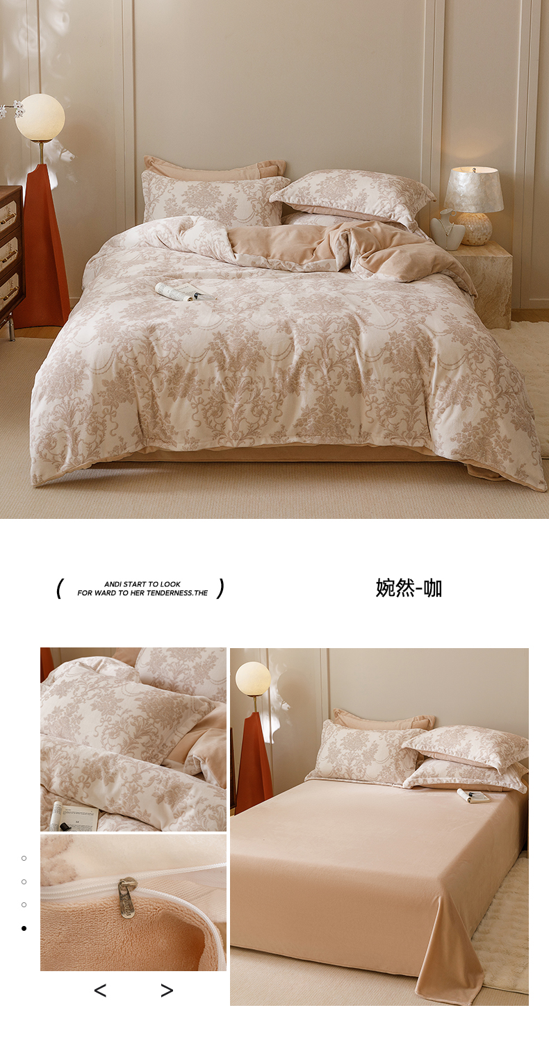 卡派 2024新款轻奢肌理纹雕花工艺款230克加厚牛奶绒四件套(提供买家秀 ) 婉然-咖