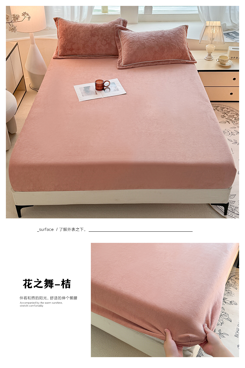 艾唯希家纺 2024新款A类牛奶绒单床笠系列 花之舞-桔-(单床笠)