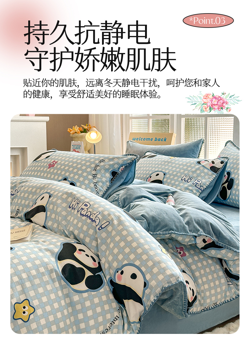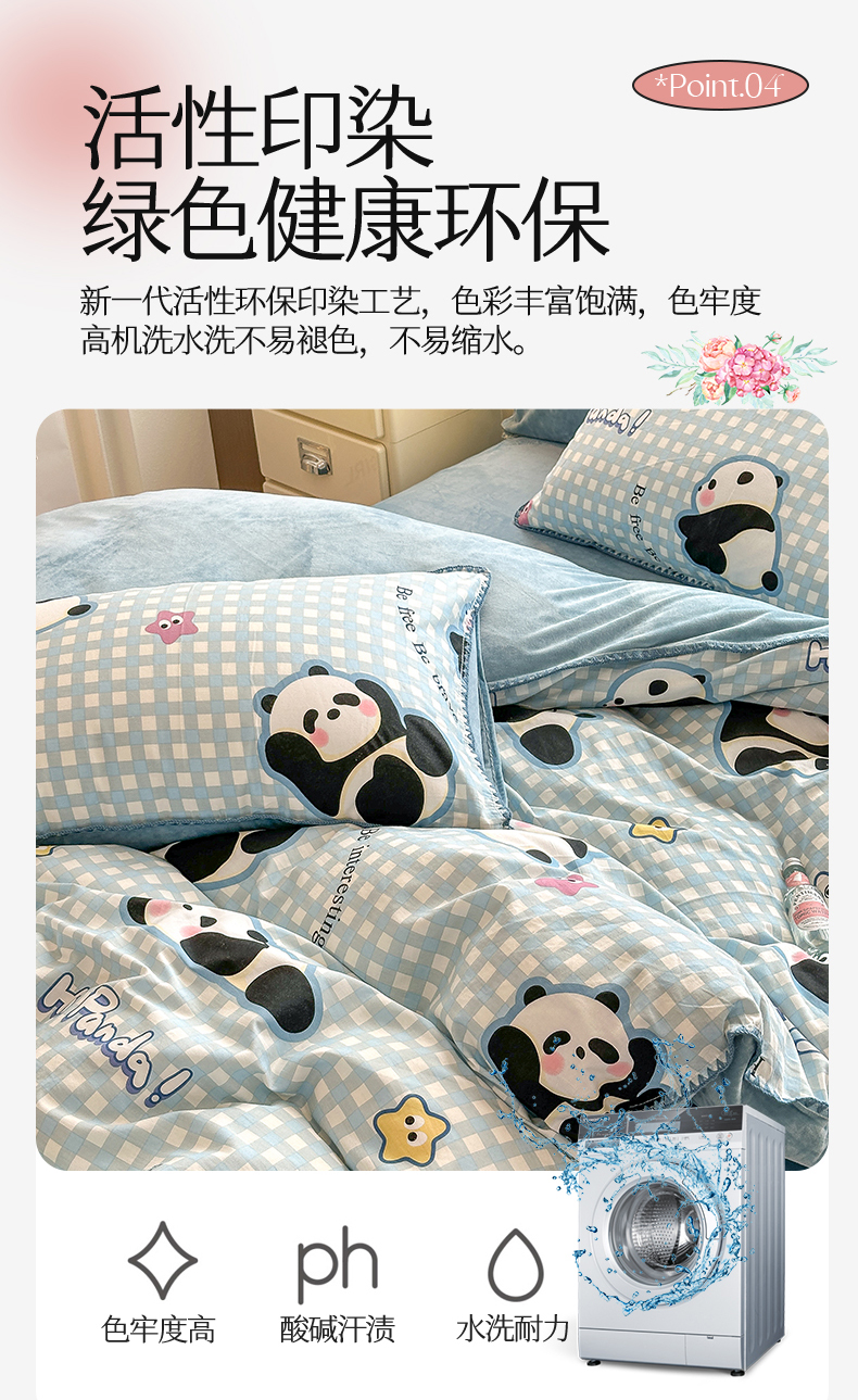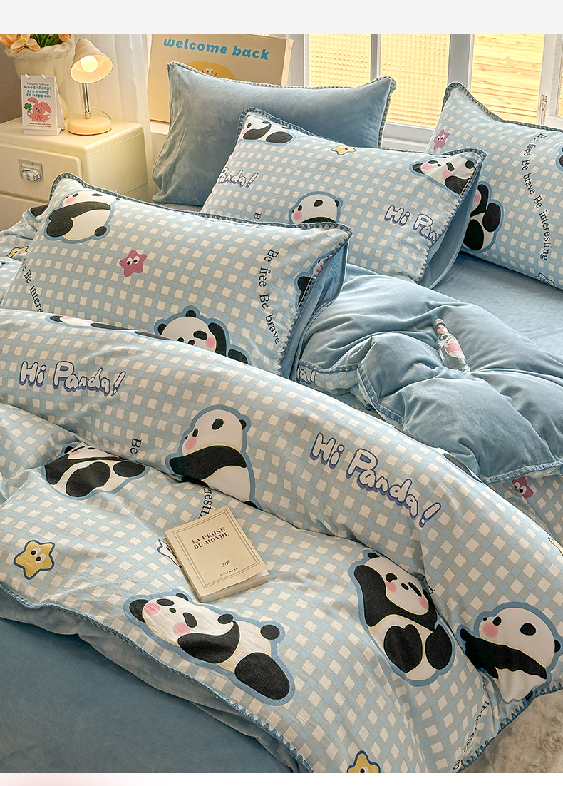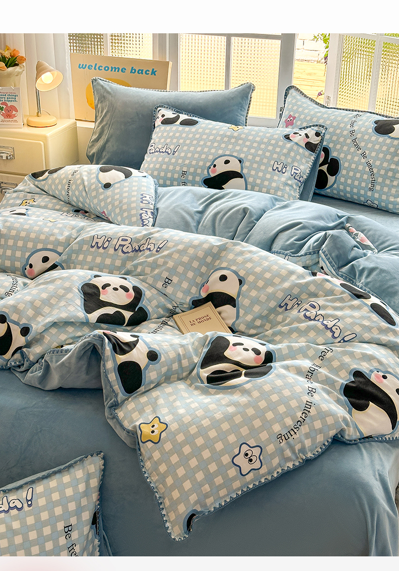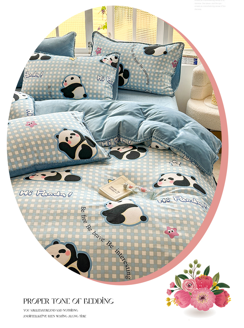 当前位置: 91家纺网 > 商品网购 > 床品套件 > 四件套 > 牛奶绒四件套 > 红粉佳人新款小清新卡通贝壳边三角针棉加绒四件套工艺款牛奶绒四件套蓝格熊猫