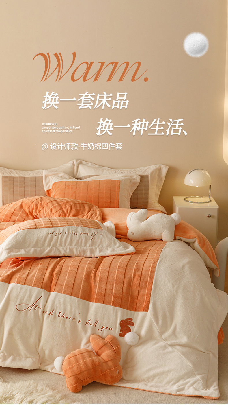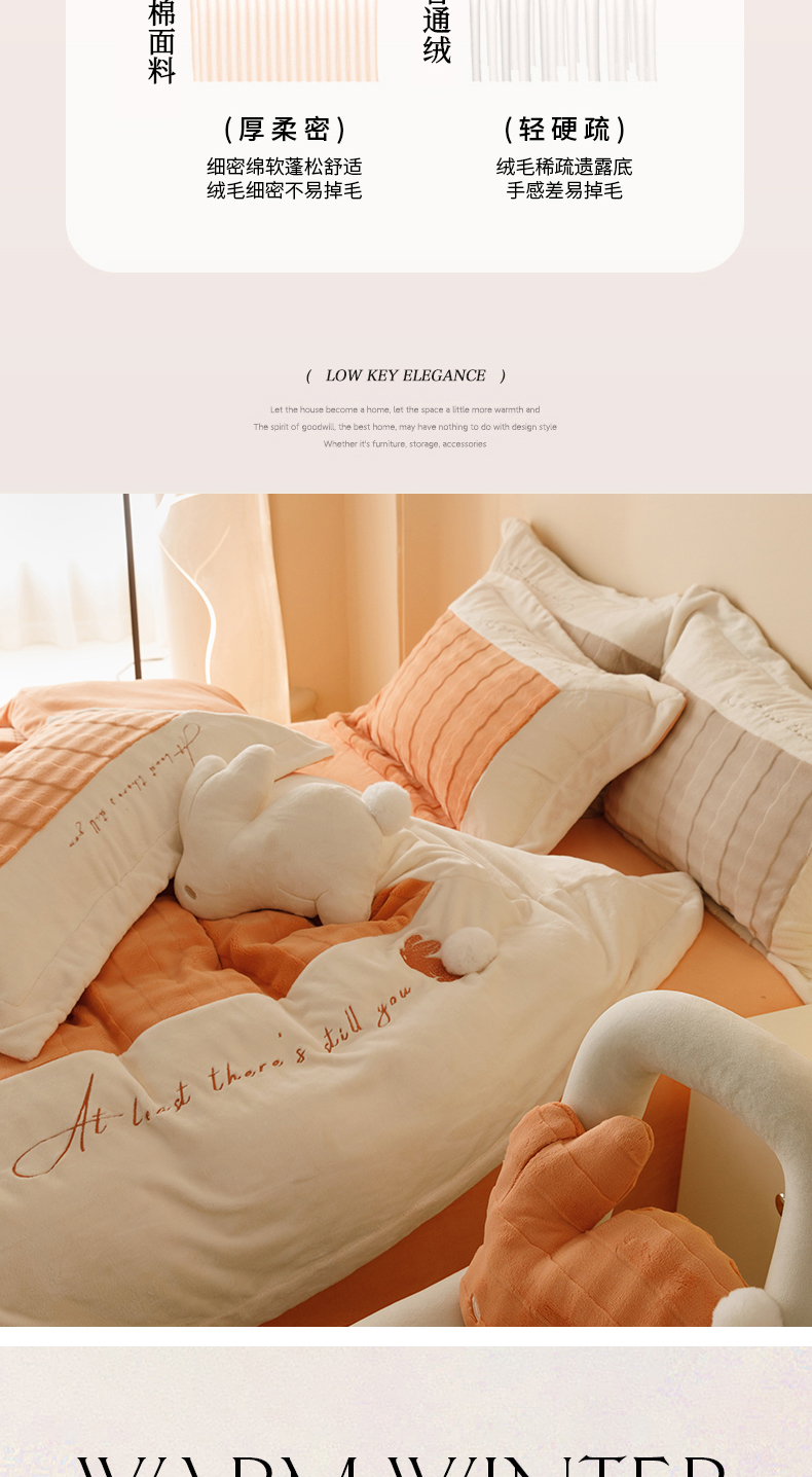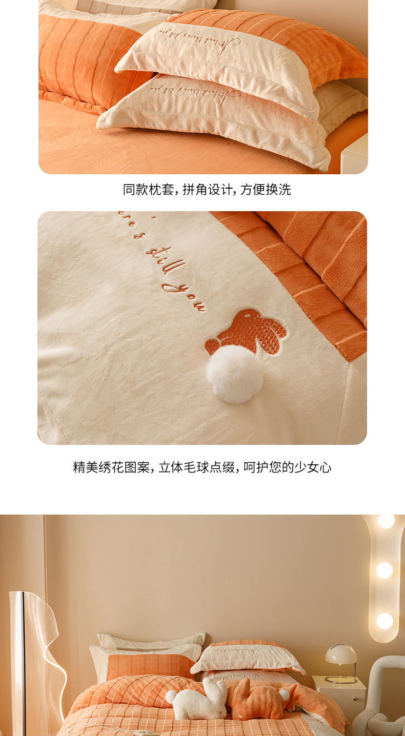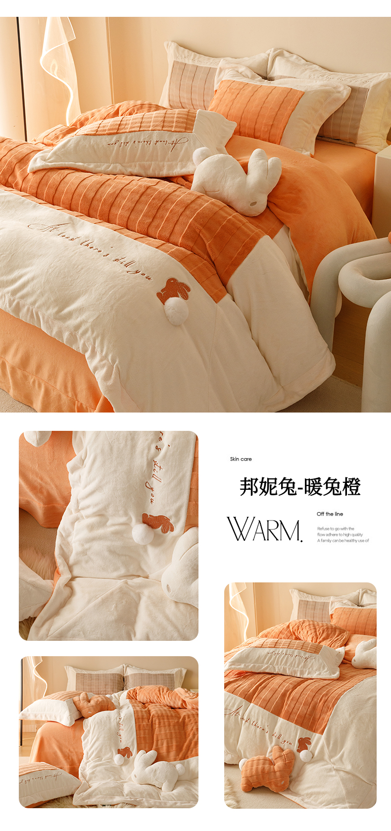 瑞米家居 2024新款牛奶棉绣花四件套-熊猫宝贝+邦妮兔 邦妮兔-暖兔橙