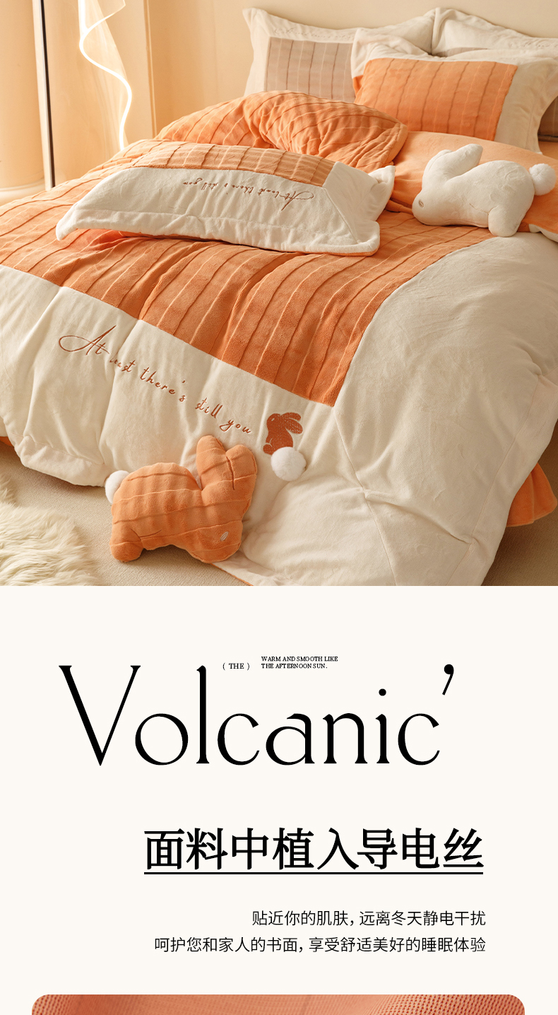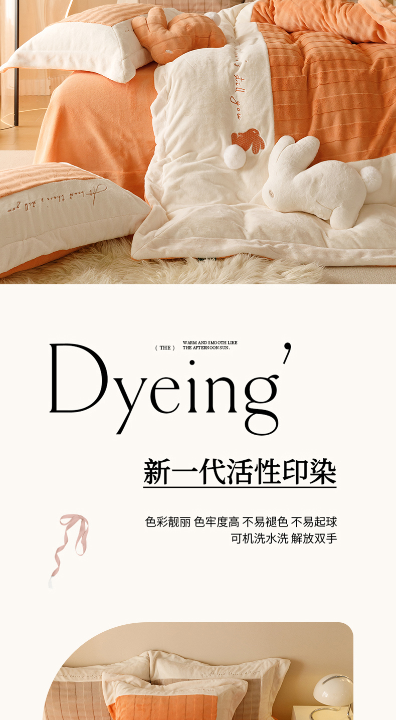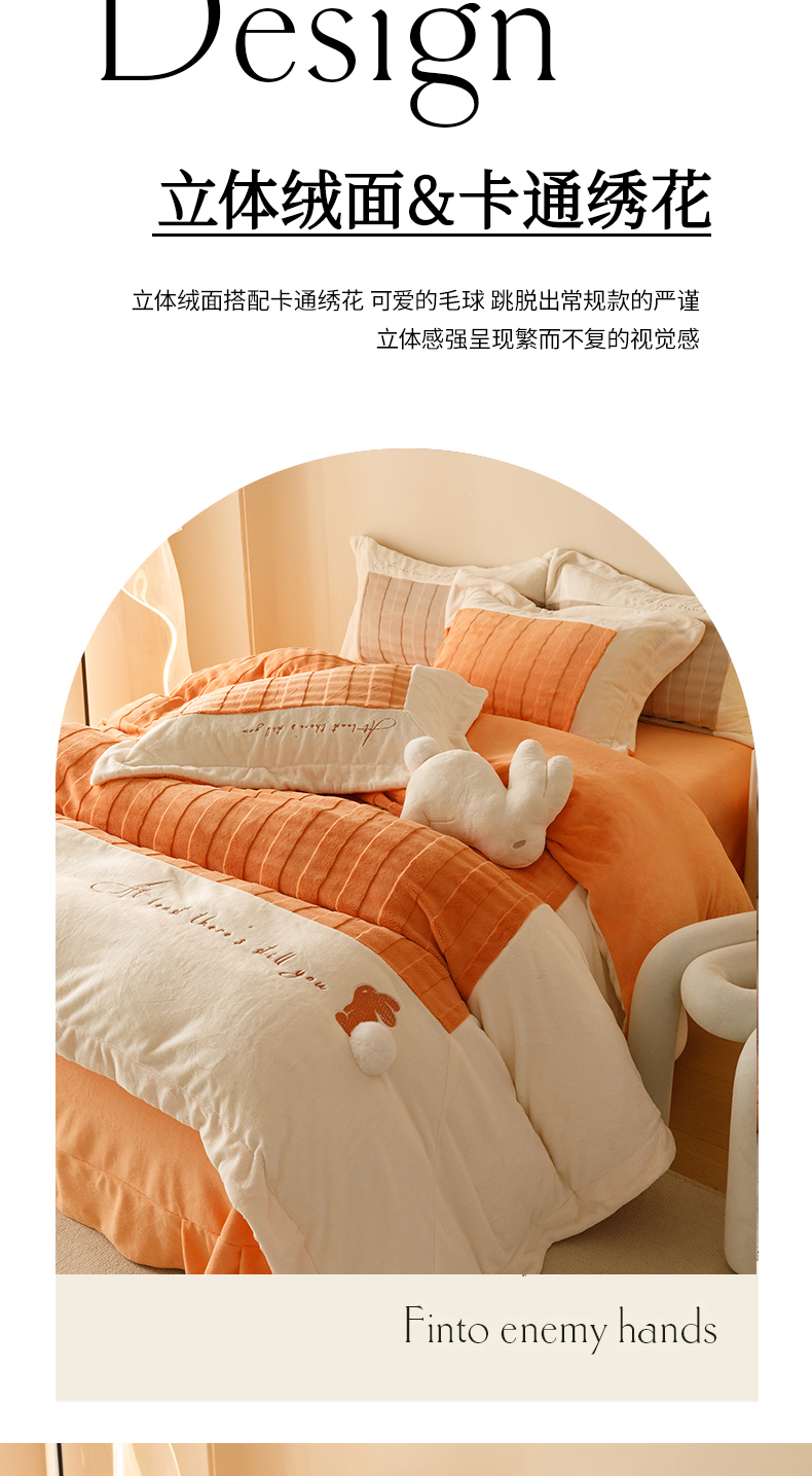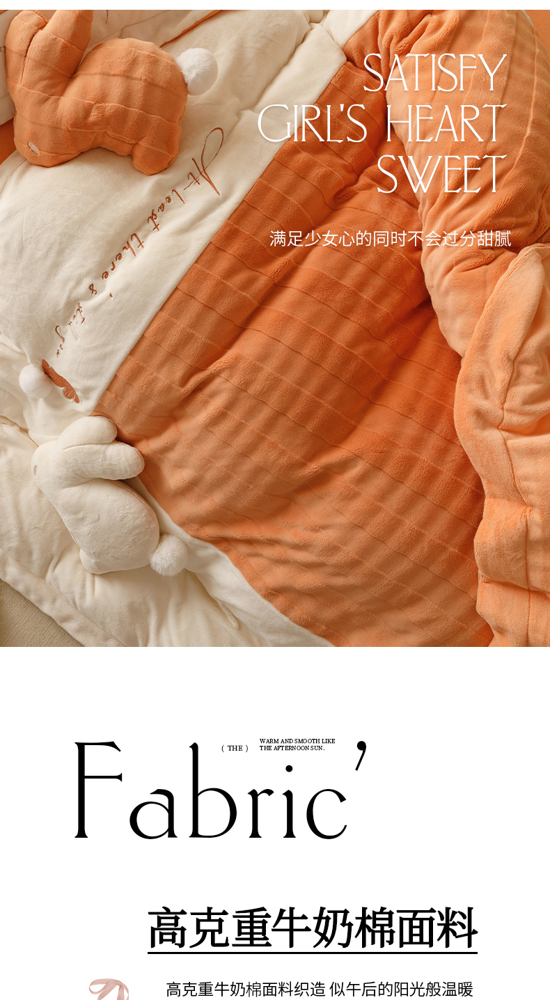 瑞米家居 2024新款牛奶棉绣花四件套-熊猫宝贝+邦妮兔 邦妮兔-暖兔橙