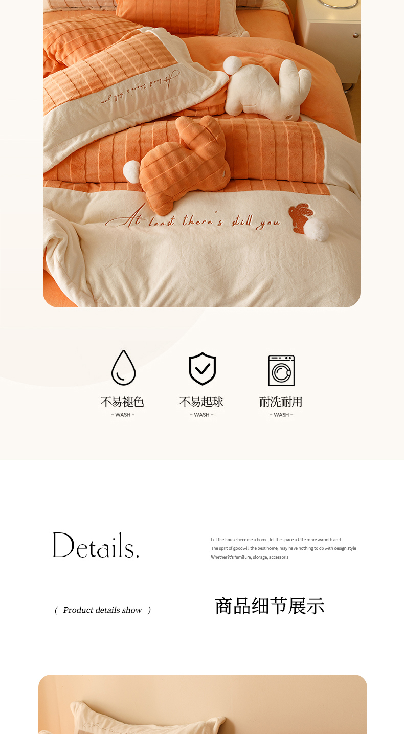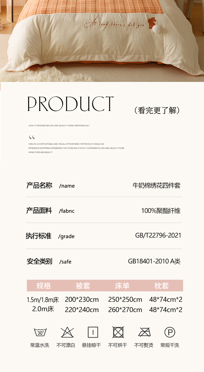 商品名称:瑞米家居 2024新款牛奶棉绣花四件套-熊猫宝贝+邦妮兔 邦妮兔-暖兔橙