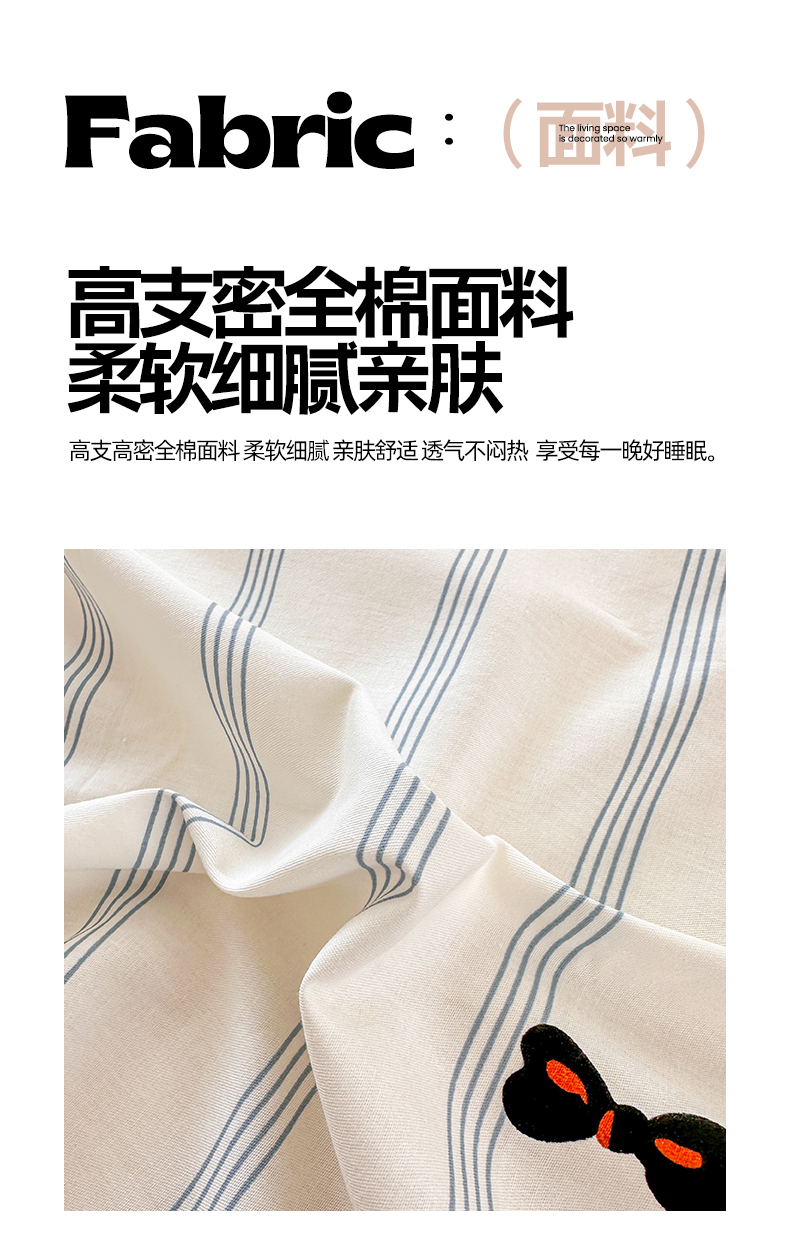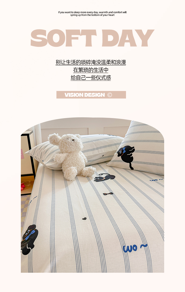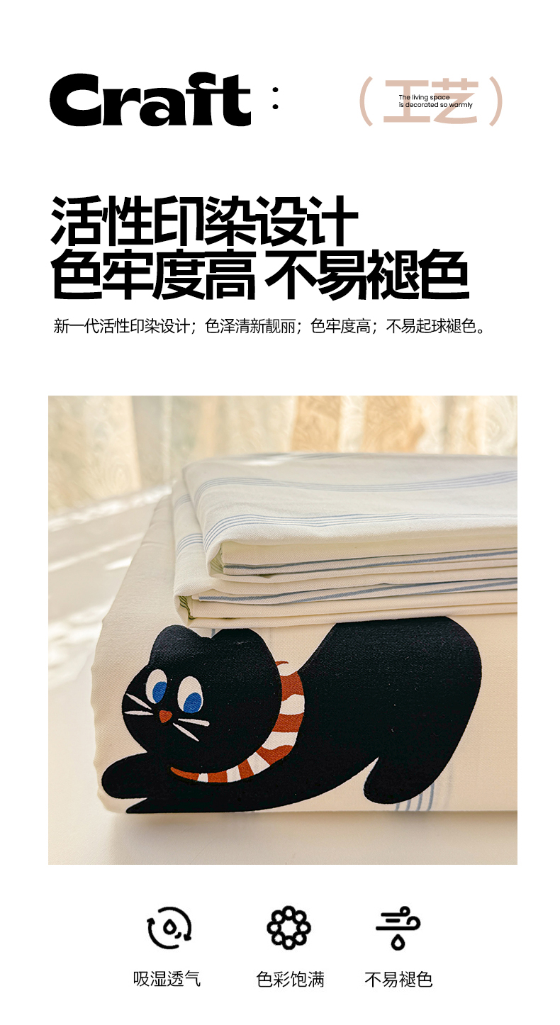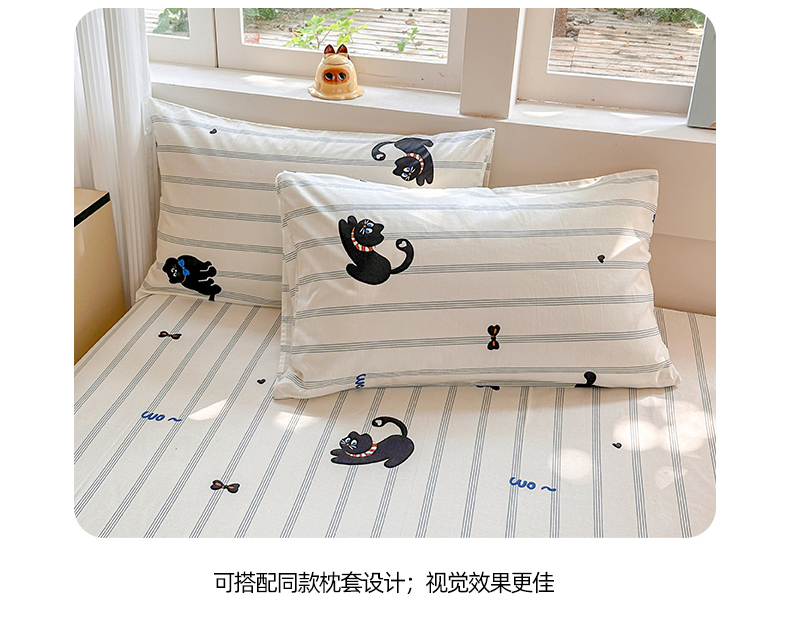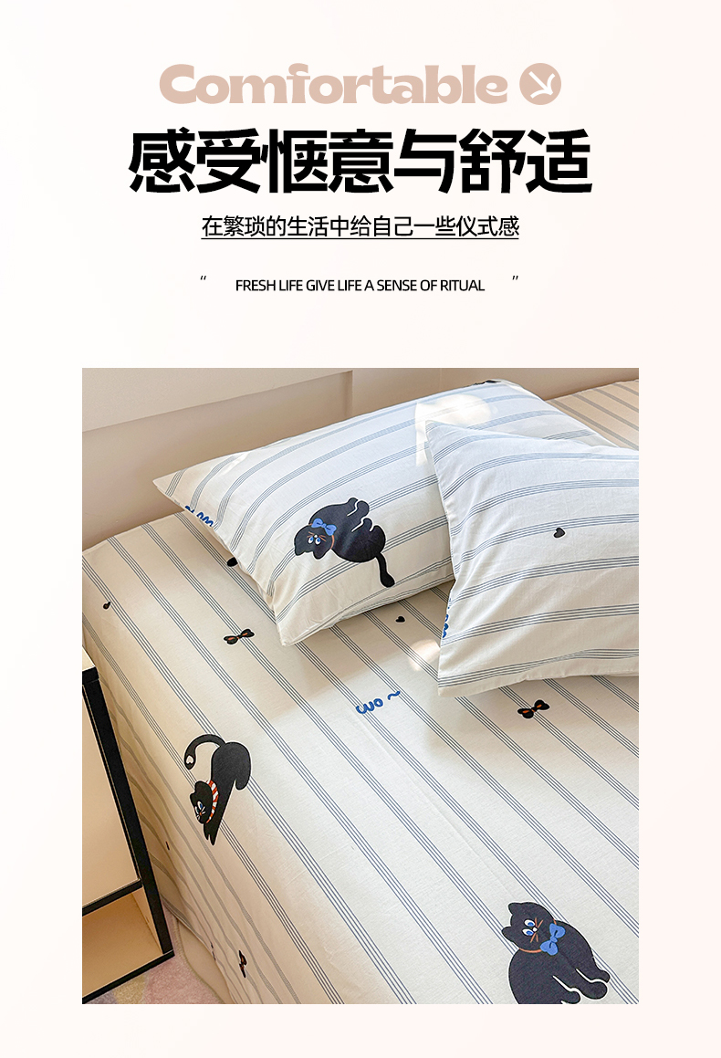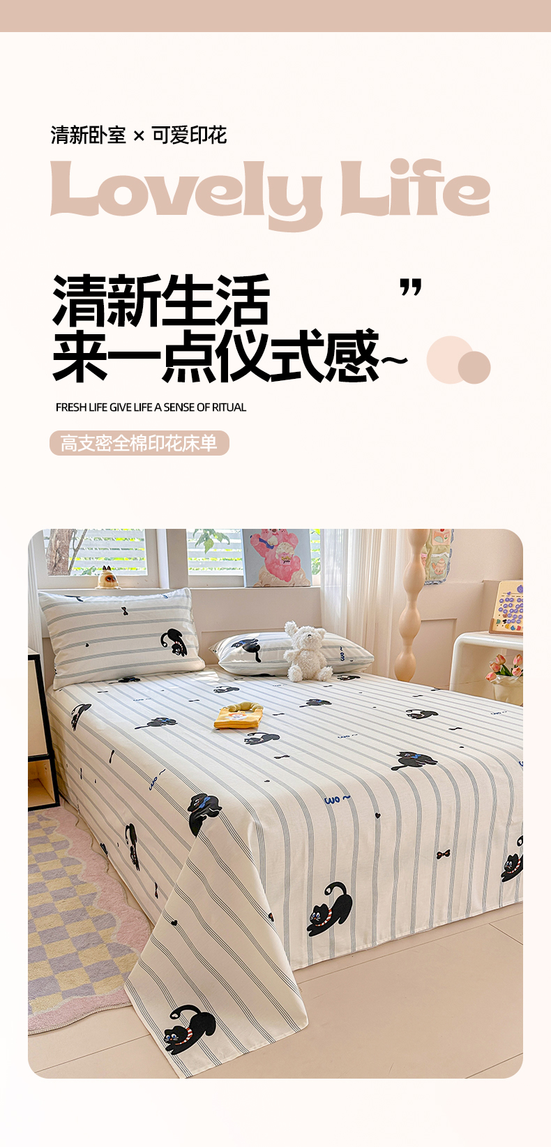 • 91家纺网 家纺一手货源 找家纺 吉象家纺 2024新款高支密全棉印花单床单 线条猫咪