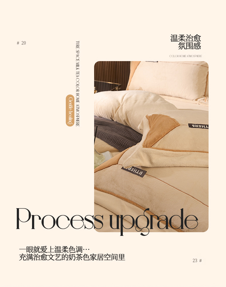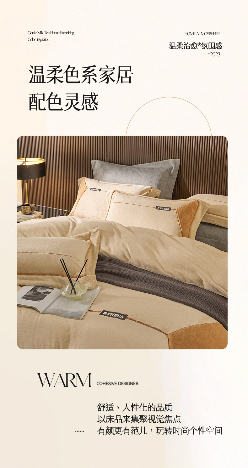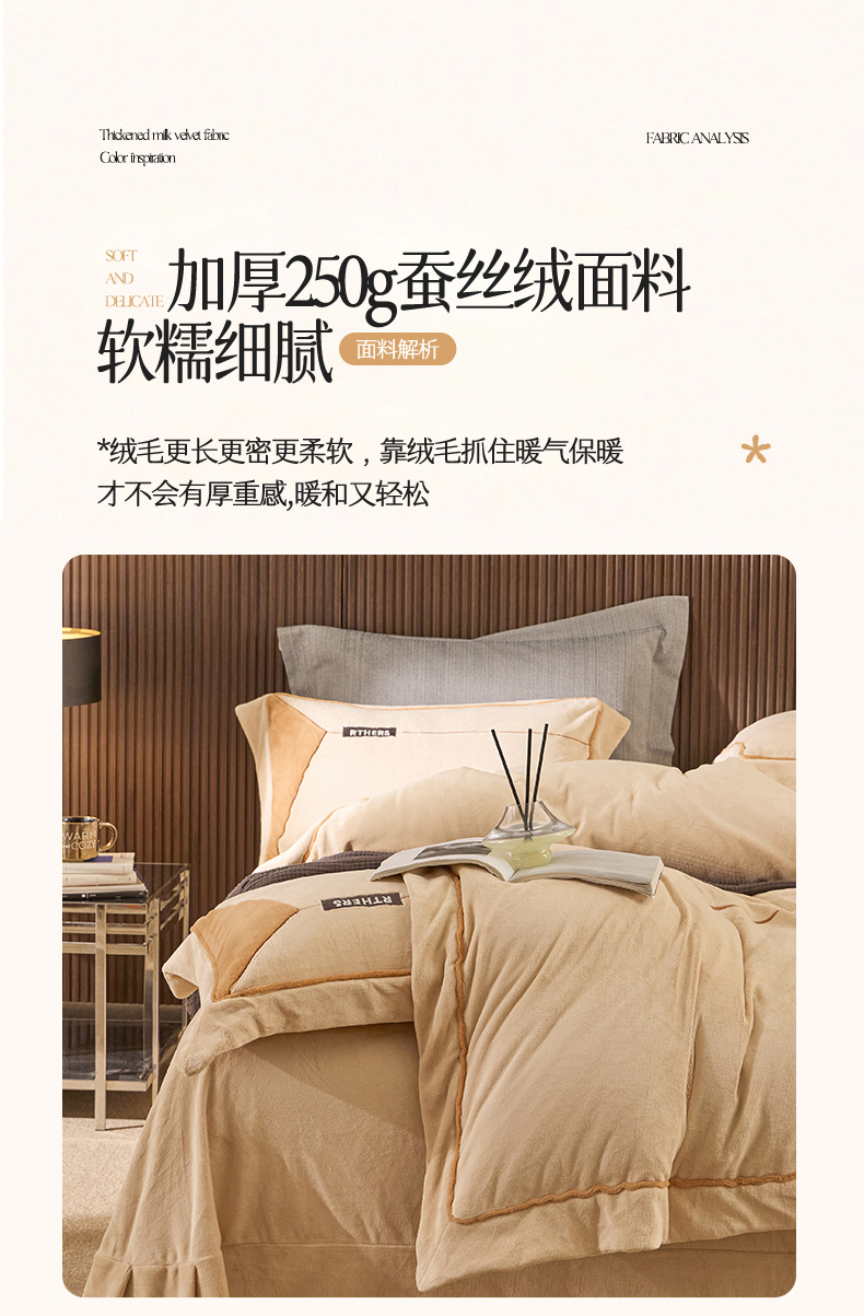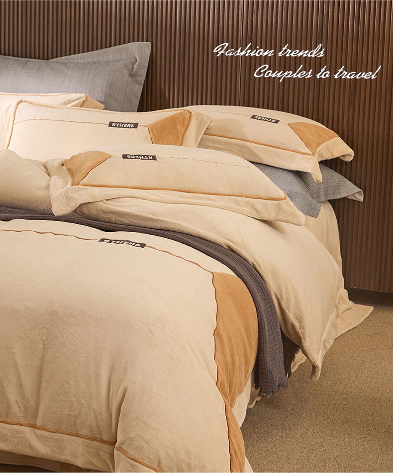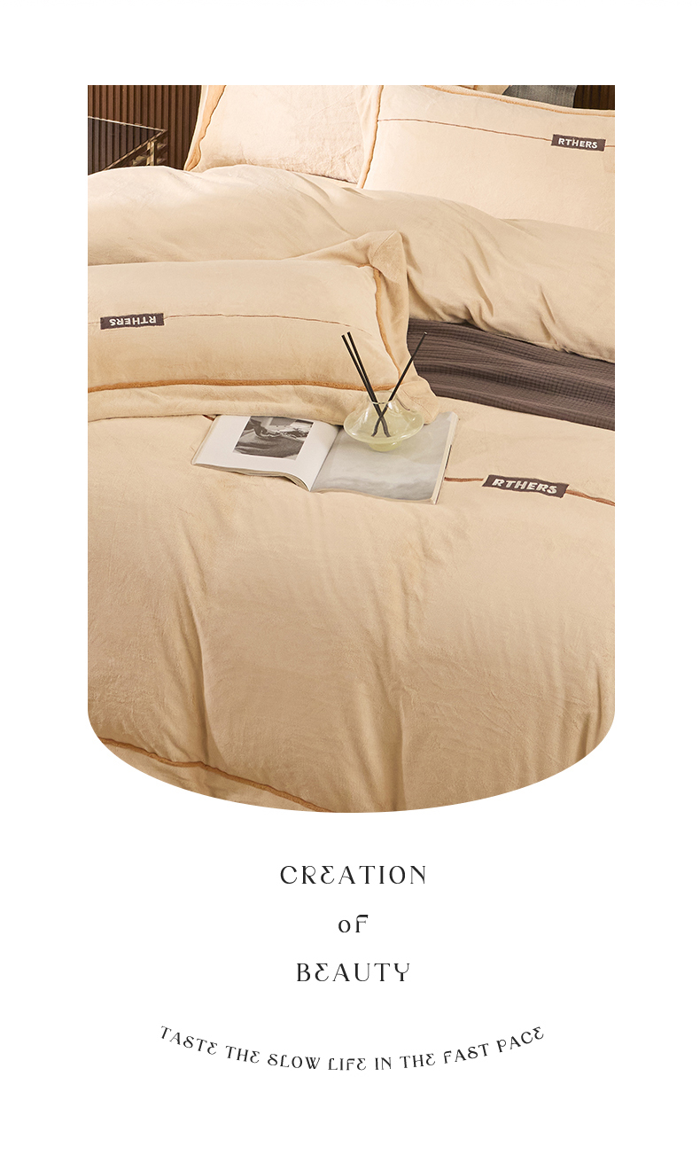 名品优仓 2024新款高克重牛奶绒刺绣四件套-巴伦西亚 杏咖