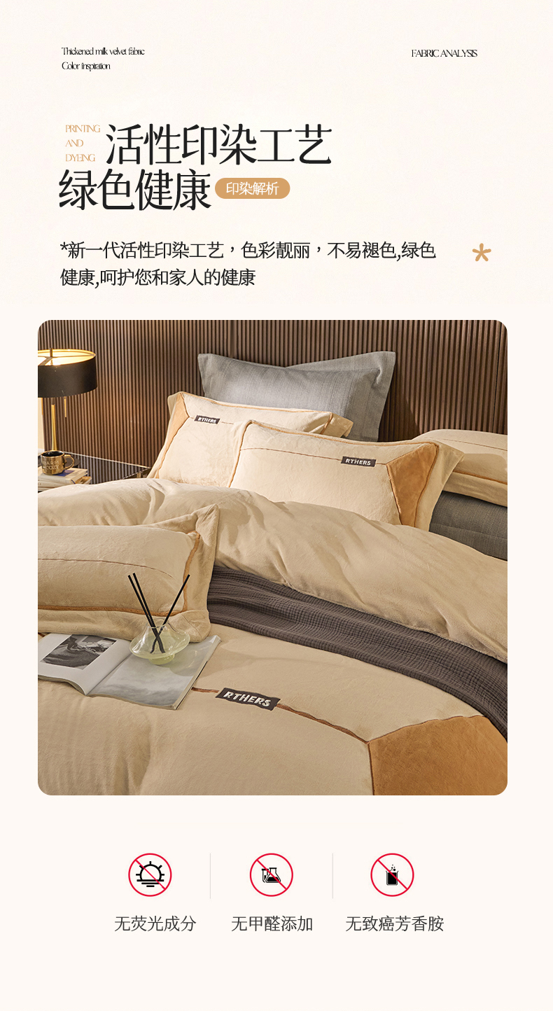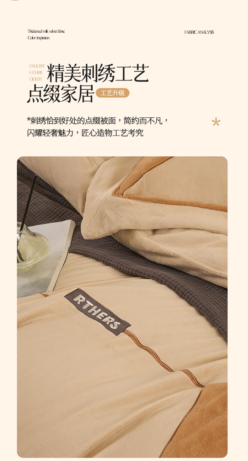 商品名称:名品优仓 2024新款高克重牛奶绒刺绣四件套-巴伦西亚 杏咖