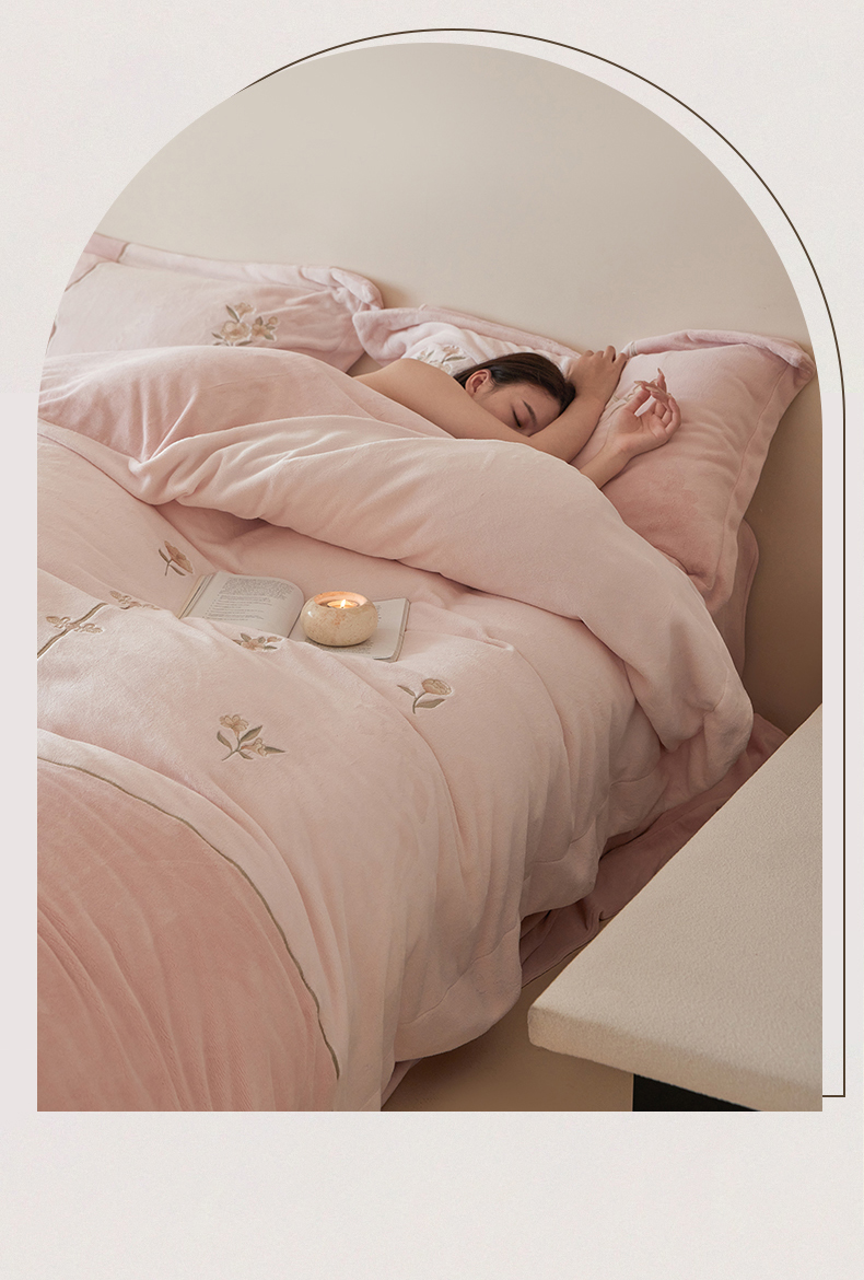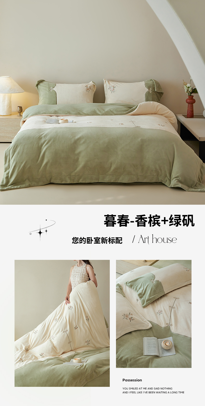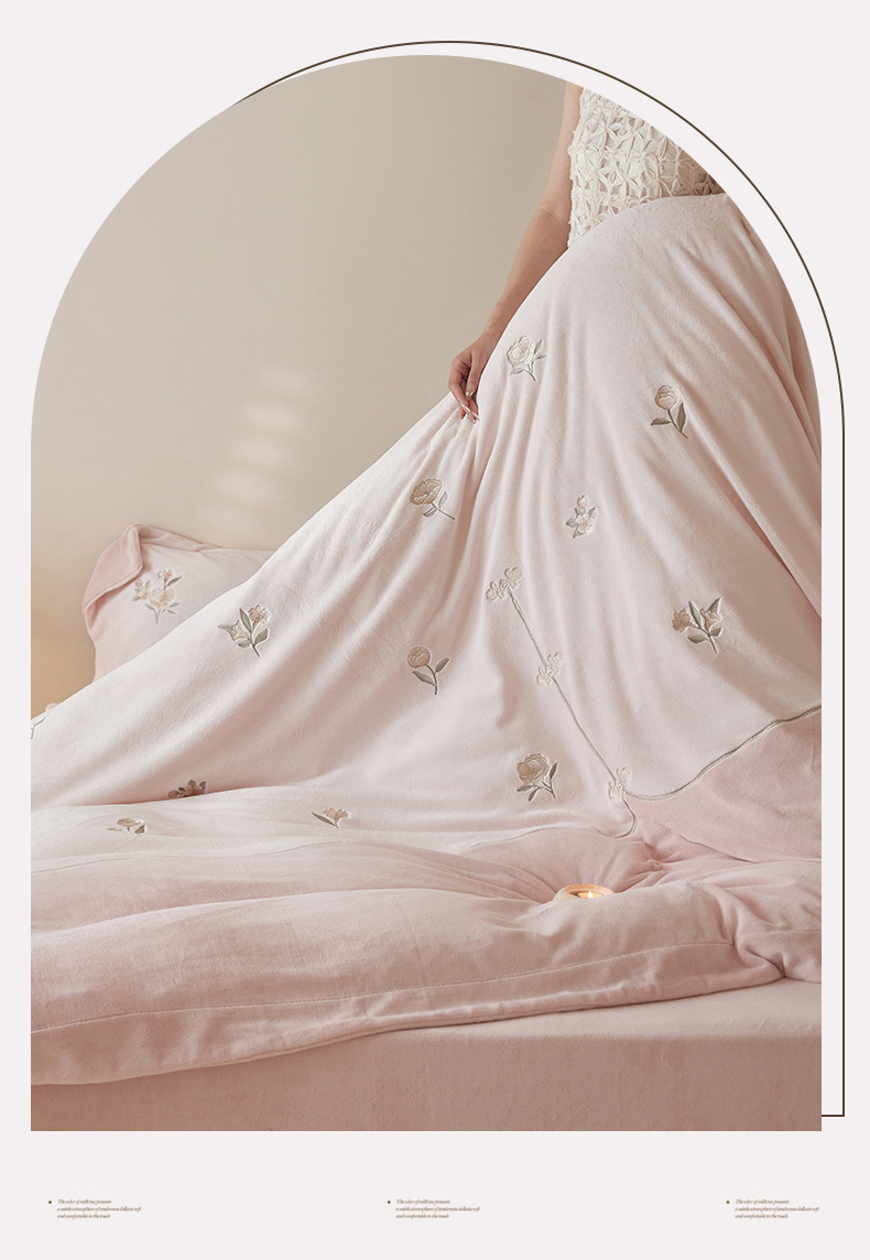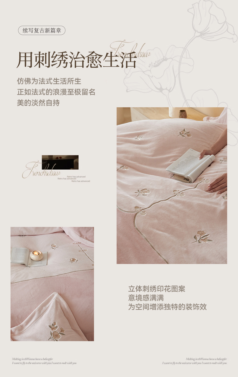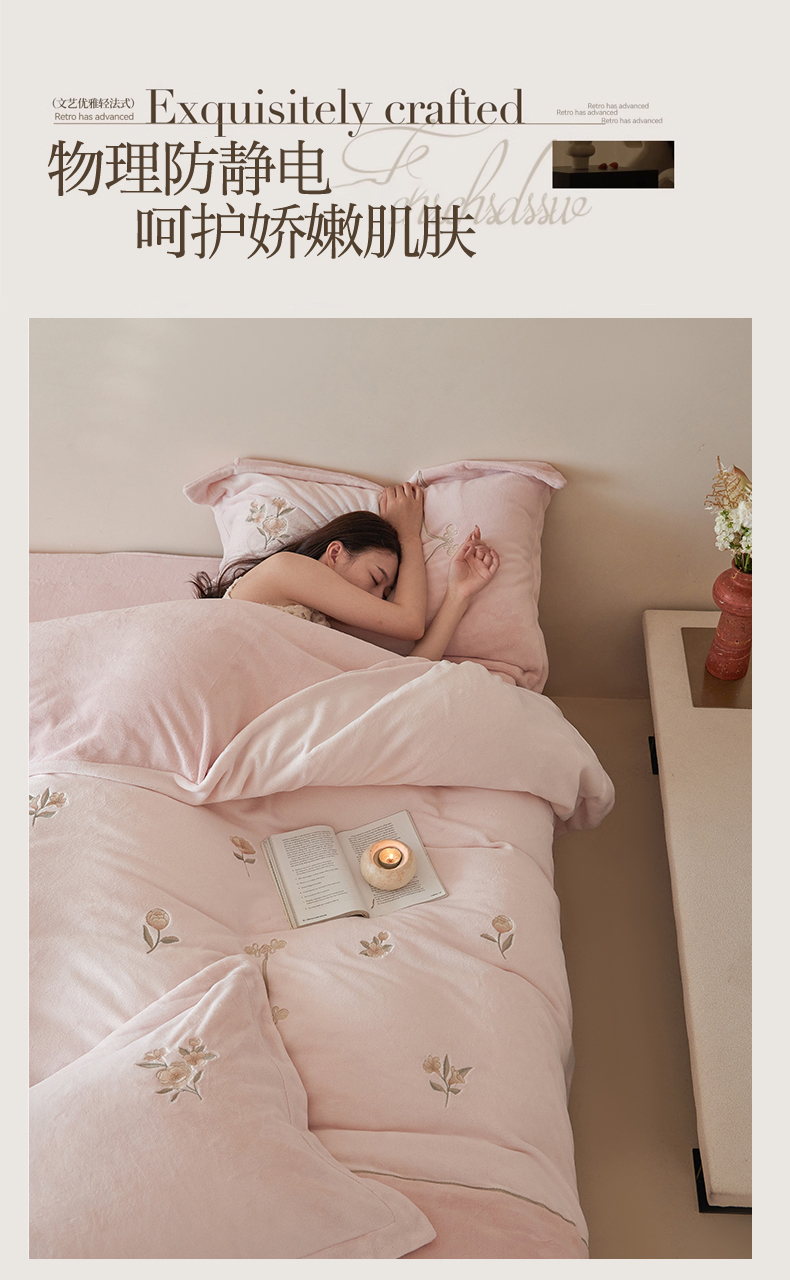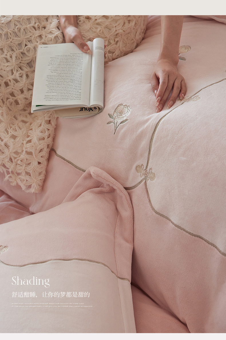 名品优仓 2024新款高克重牛奶绒刺绣宽边四件套-暮春 暮春-浅粉+牛奶粉