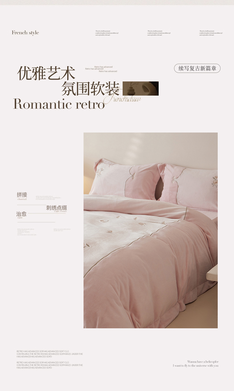 商品名称:名品优仓 2024新款高克重牛奶绒刺绣宽边四件套-暮春 暮春-浅粉+牛奶粉