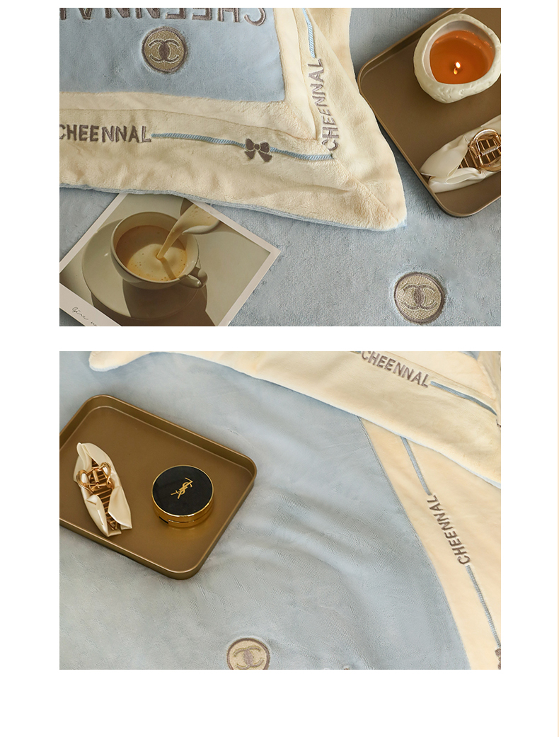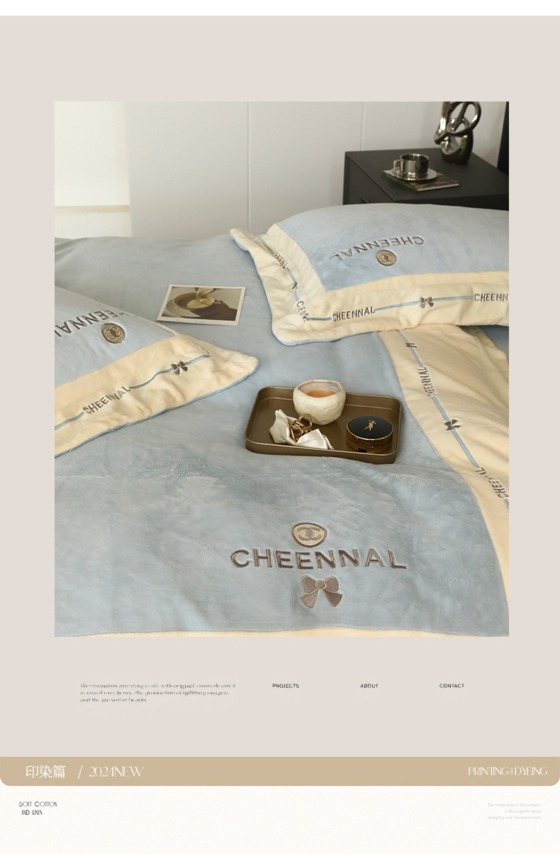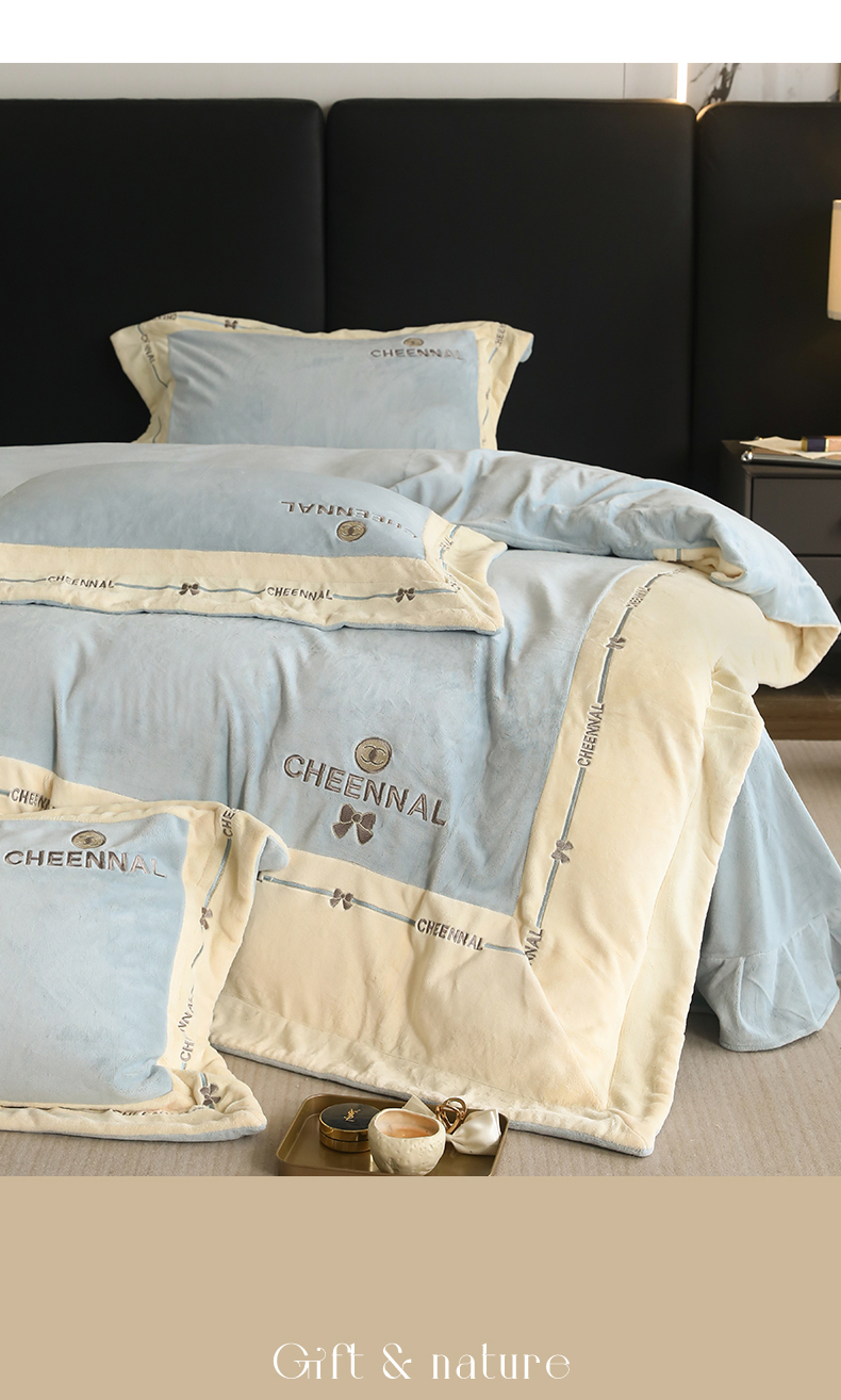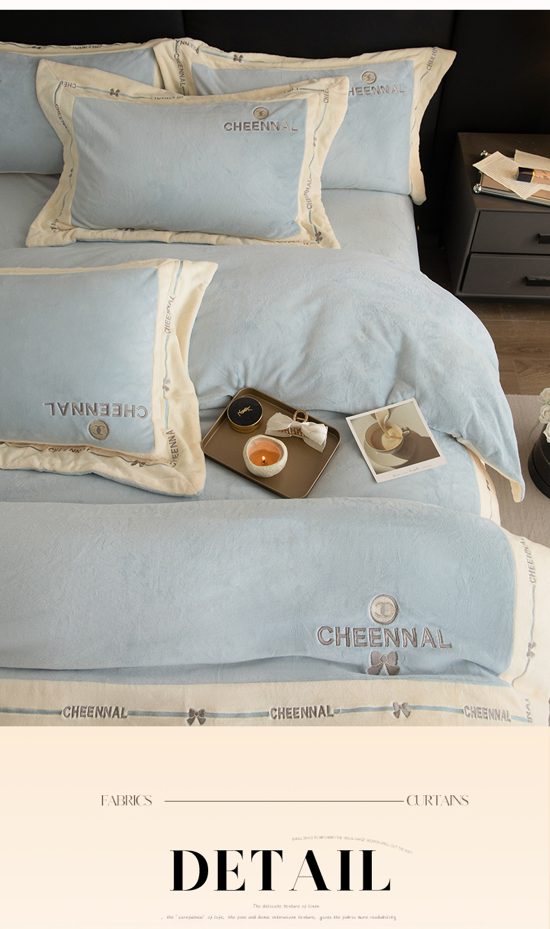 名品优仓 2024新款高克重高克重牛奶绒四件套-希娜尔 希娜尔-梦蓝