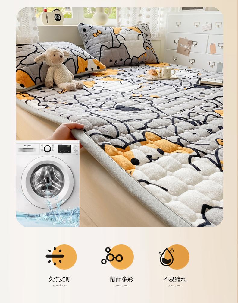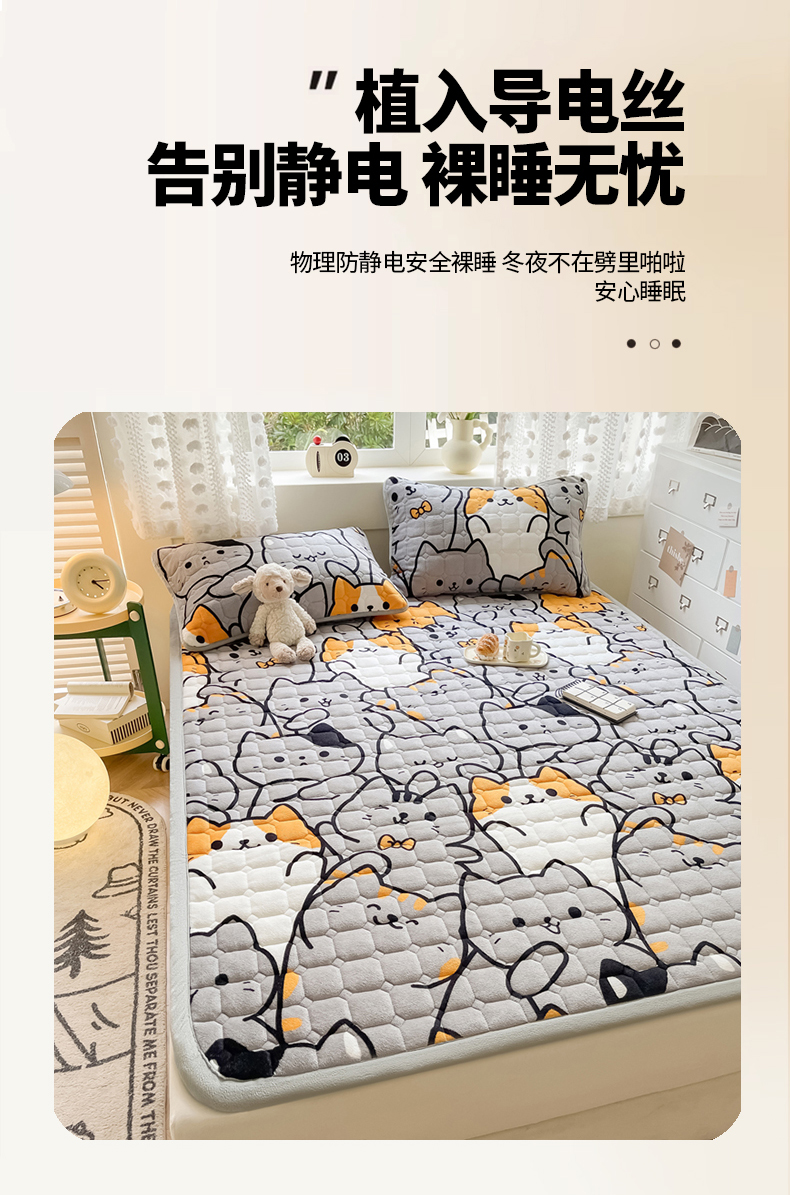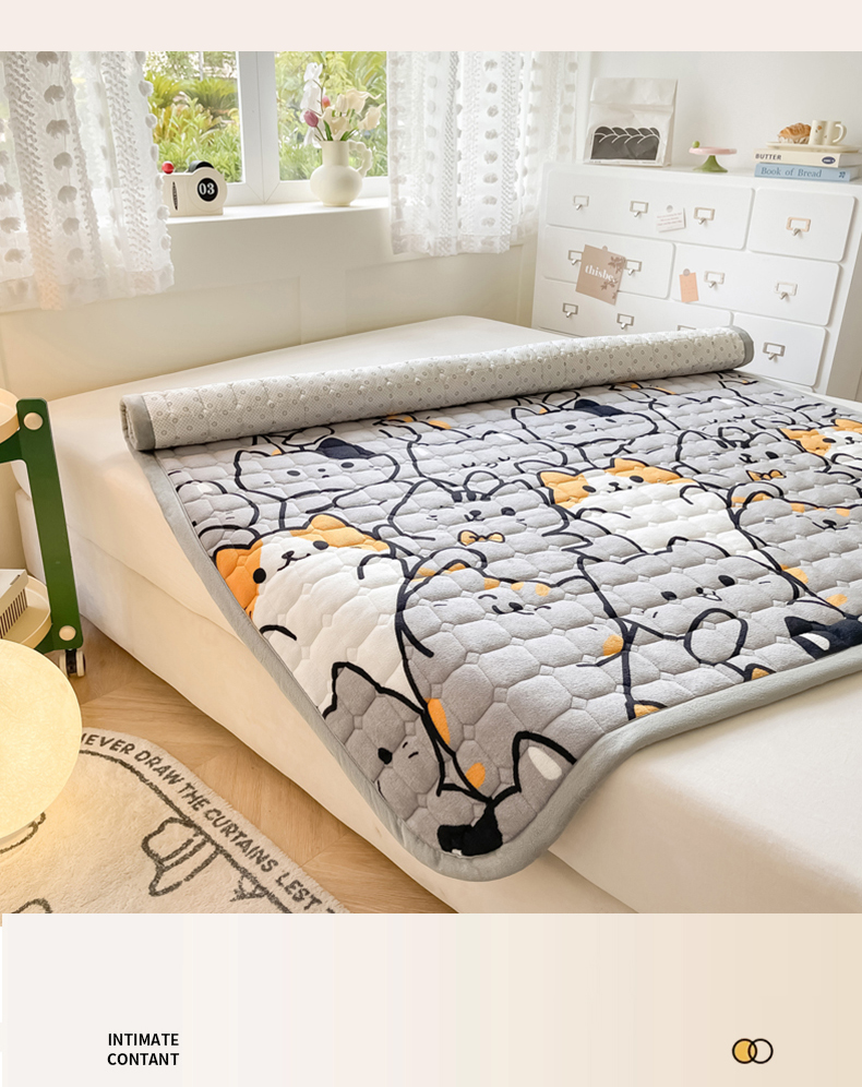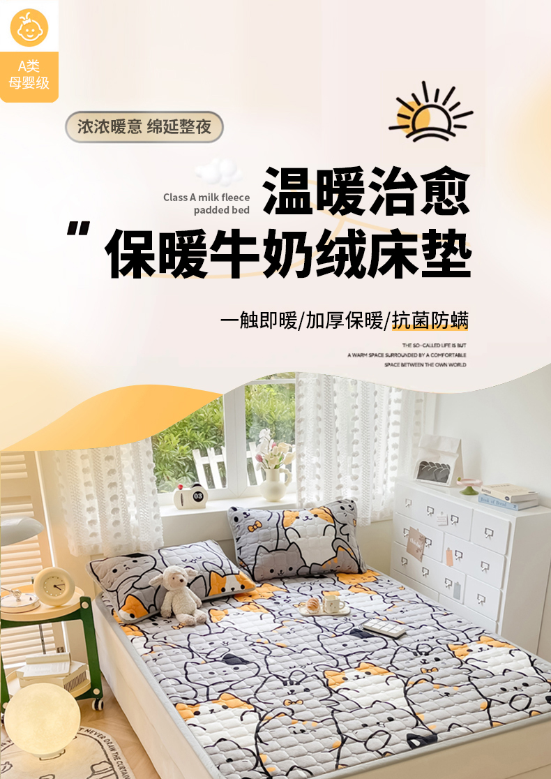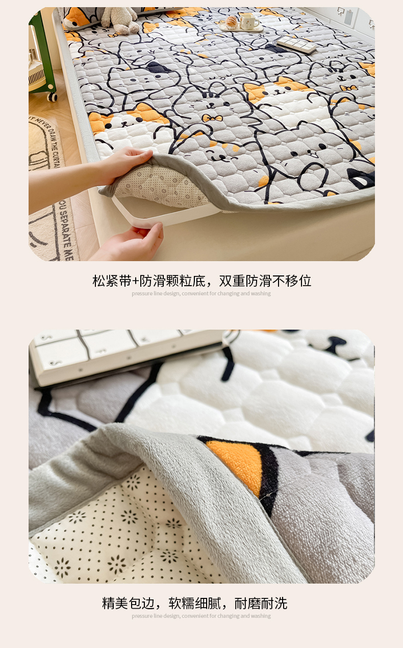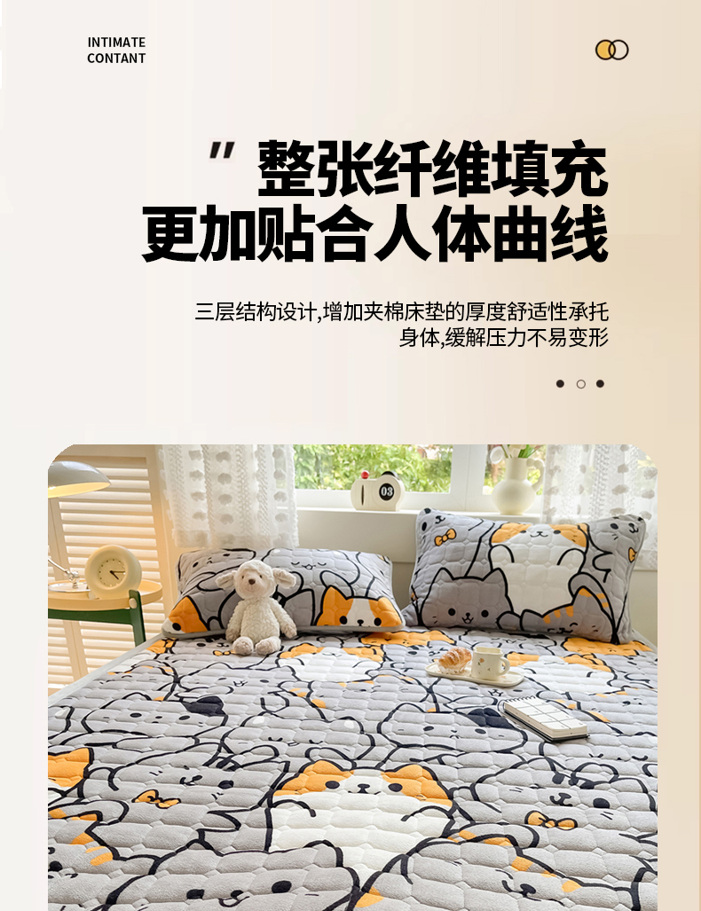 当前位置: 91家纺网 > 商品网购 > 床垫/床褥 > 普通床垫 > 2024新款牛奶绒床垫保暖床褥子夹棉加厚印花床护垫大床图 猫咪乐园