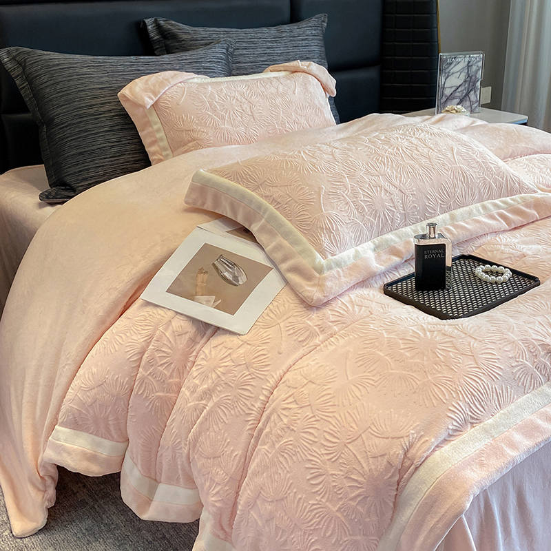 2025新款秋冬AB版250克全消光立体雕花烂花牛奶绒双拼角四件套-璀璨烟花 璀璨烟花-白桃粉