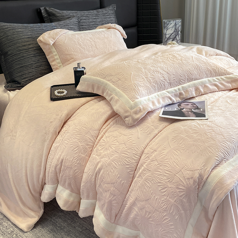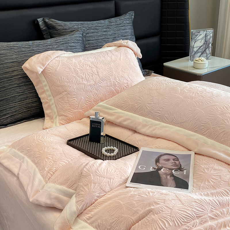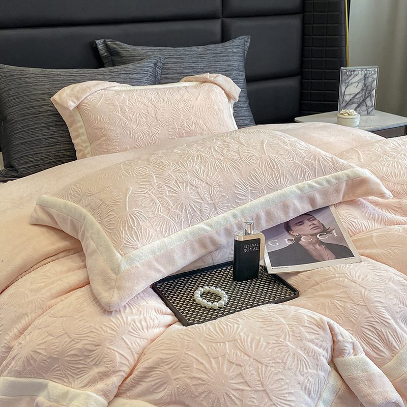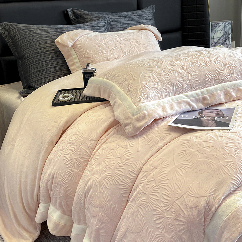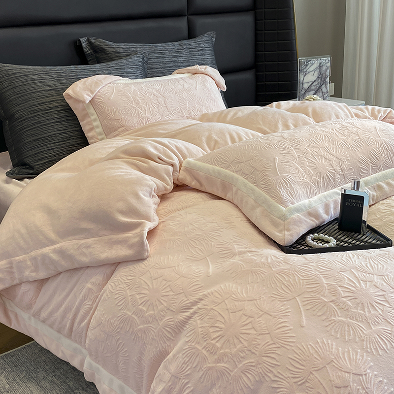 商品名称:2025新款秋冬AB版250克全消光立体雕花烂花牛奶绒双拼角四件套-璀璨烟花 璀璨烟花-白桃粉