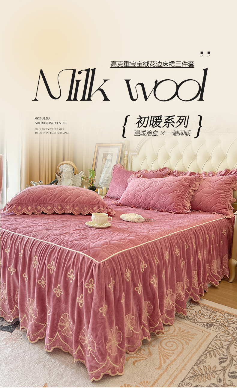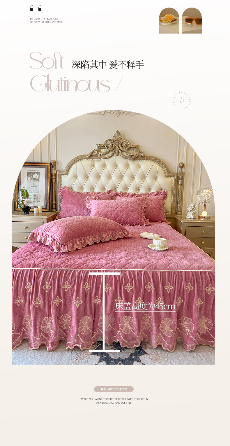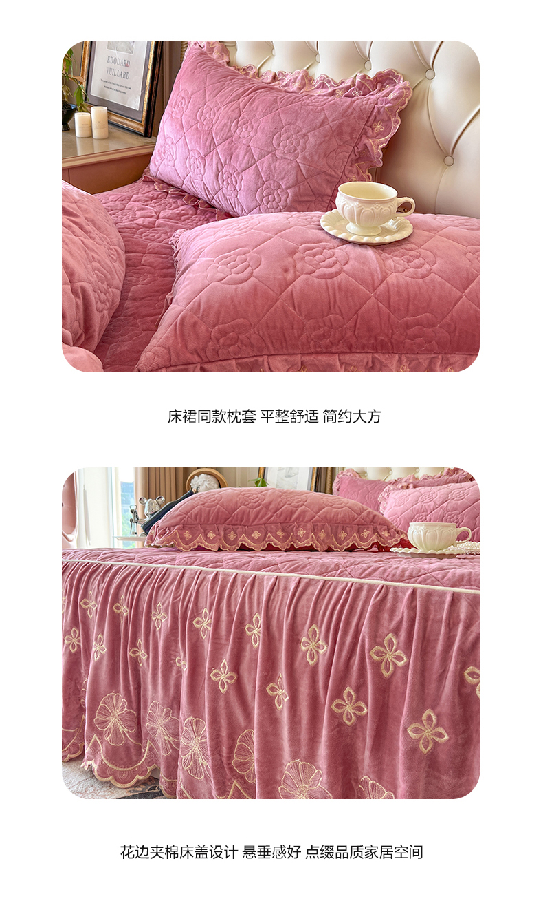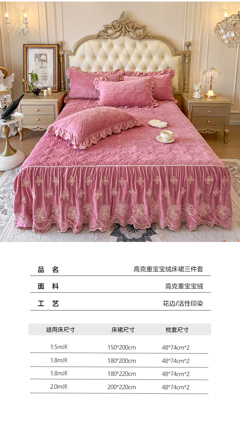 网红馆(ck家纺) 2025新款高克重宝宝绒床裙三件套 豆沙粉