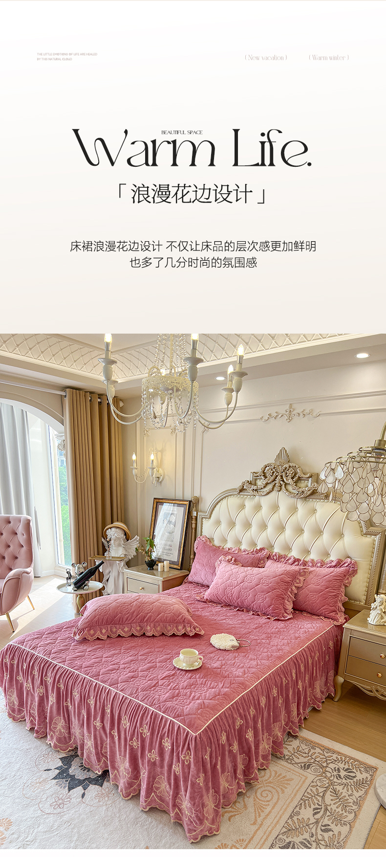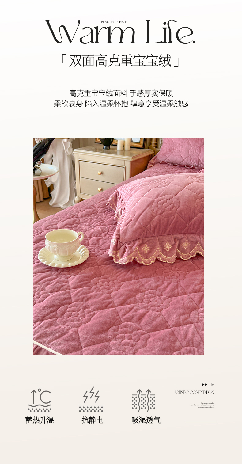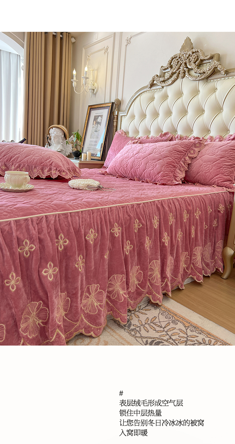 网红馆(ck家纺) 2025新款高克重宝宝绒床裙三件套 豆沙粉