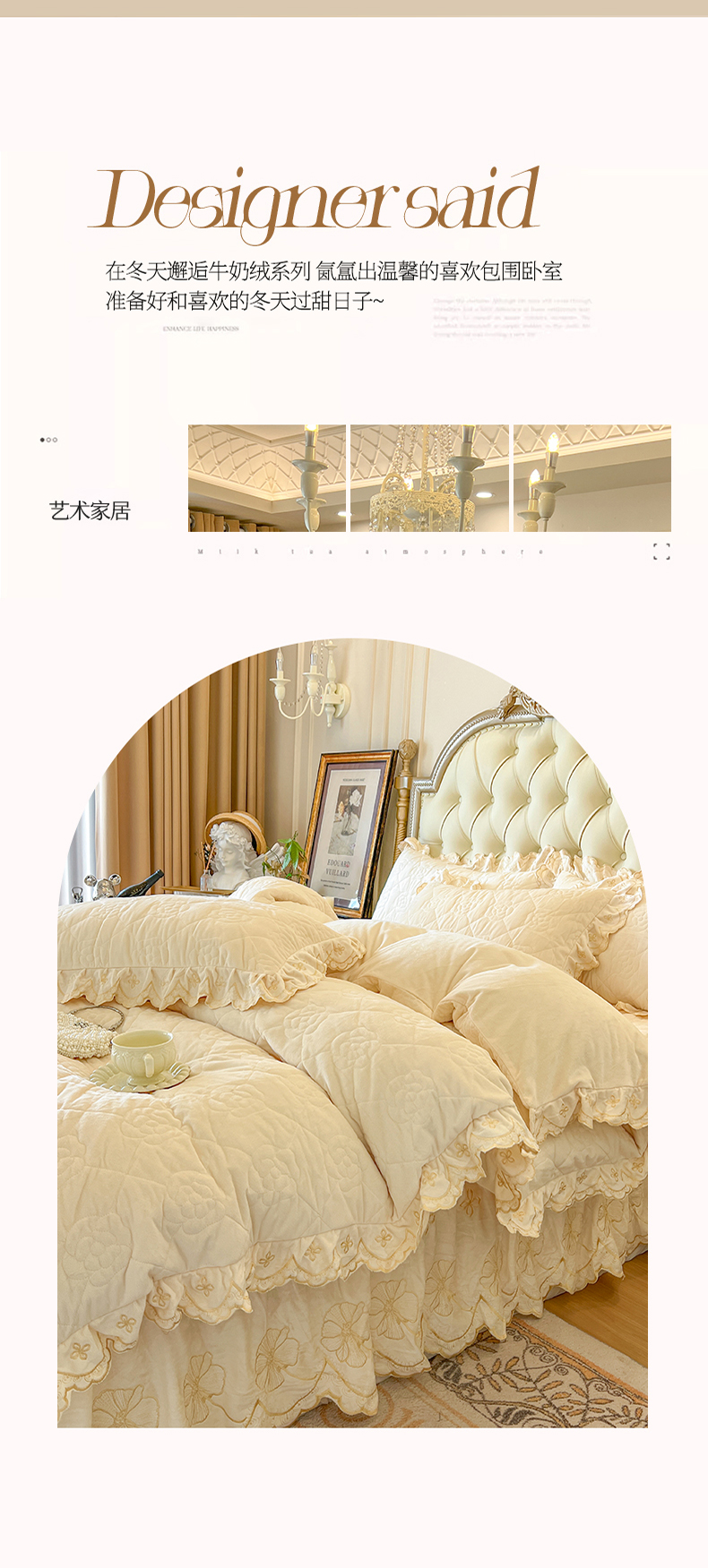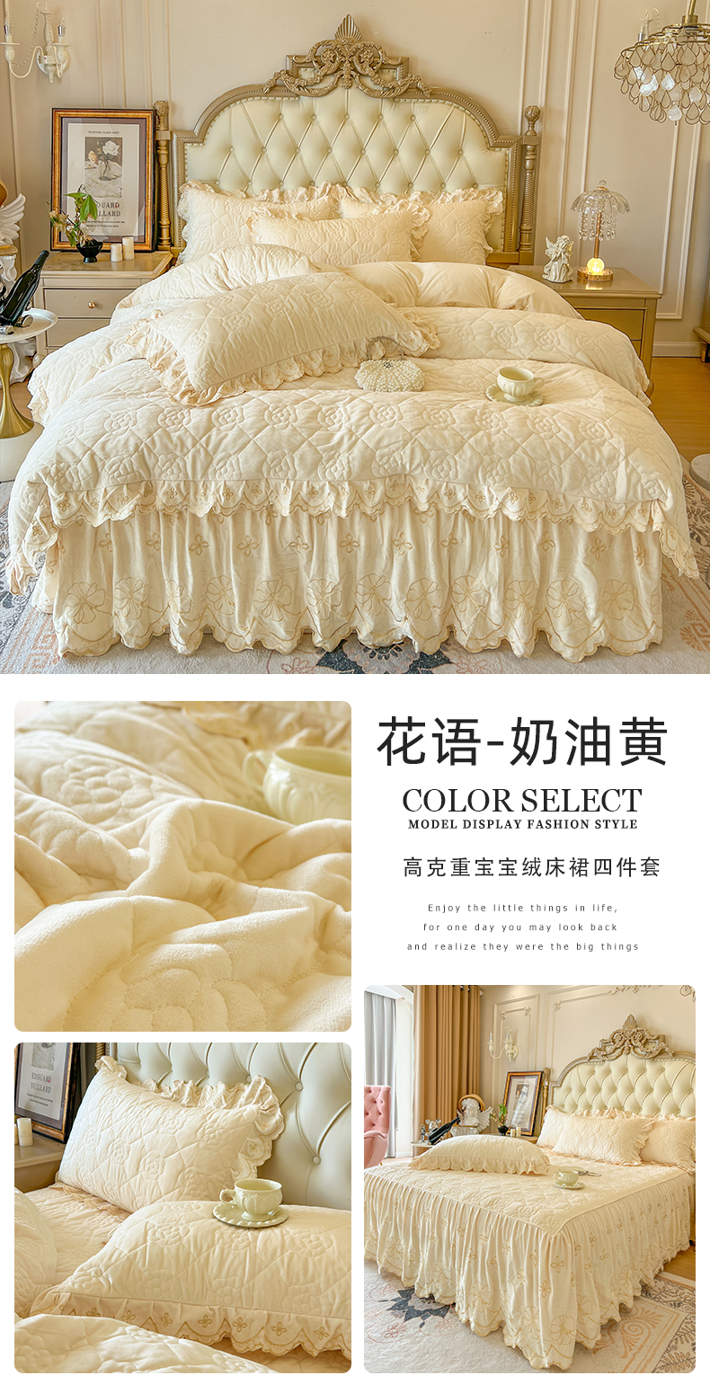 当前位置: 91家纺网 > 商品网购 > 床品套件 > 四件套 > 其它四件套 > 网红馆(ck家纺) 2025新款高克重宝宝绒床裙四件套 奶油黄