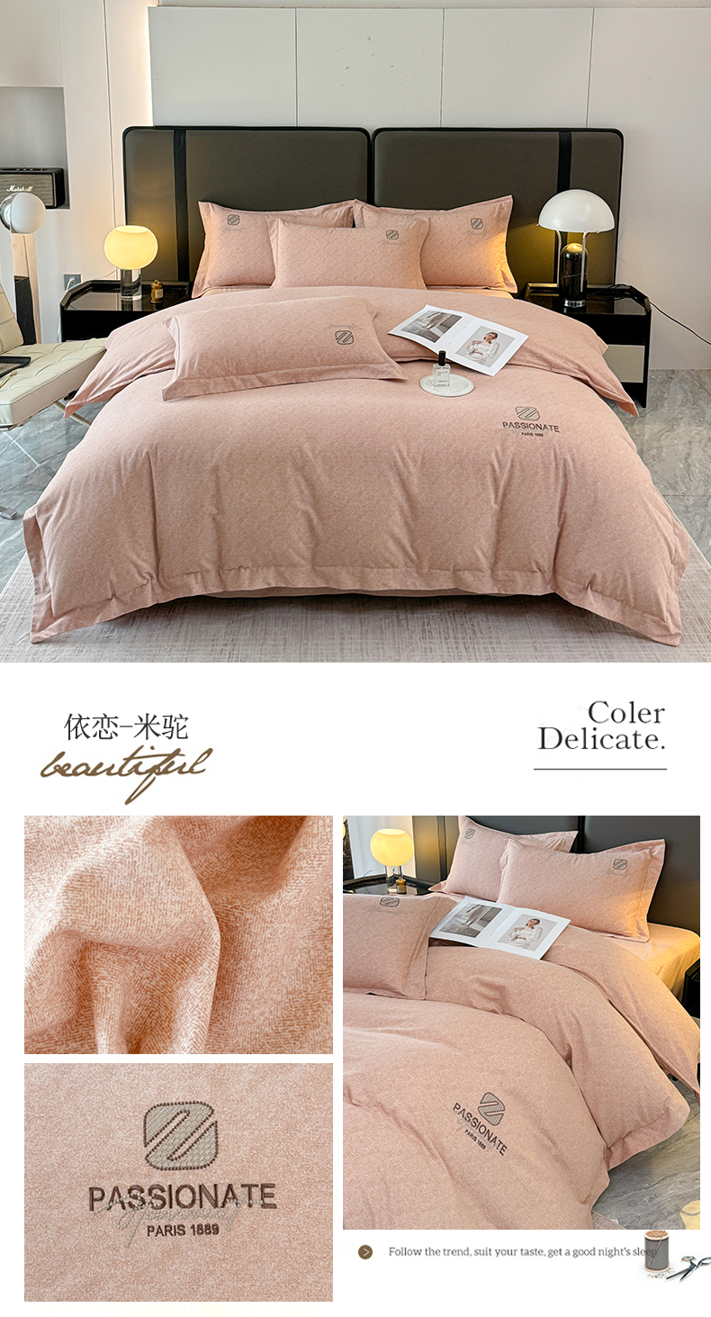 (总)铭浩家纺 2025新款100 %全棉磨毛剌绣宽边四件套-依恋,依恋- 米驼,依恋- 樱花粉,依恋- 紫灰,依恋-轻紫,依恋-雾霾灰