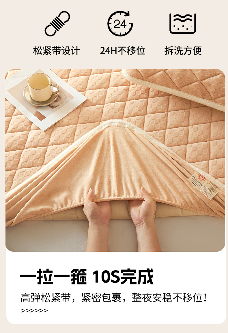 商品名称:(总)鑫钰 22024秋冬新款加厚牛奶绒烂花夹棉床笠