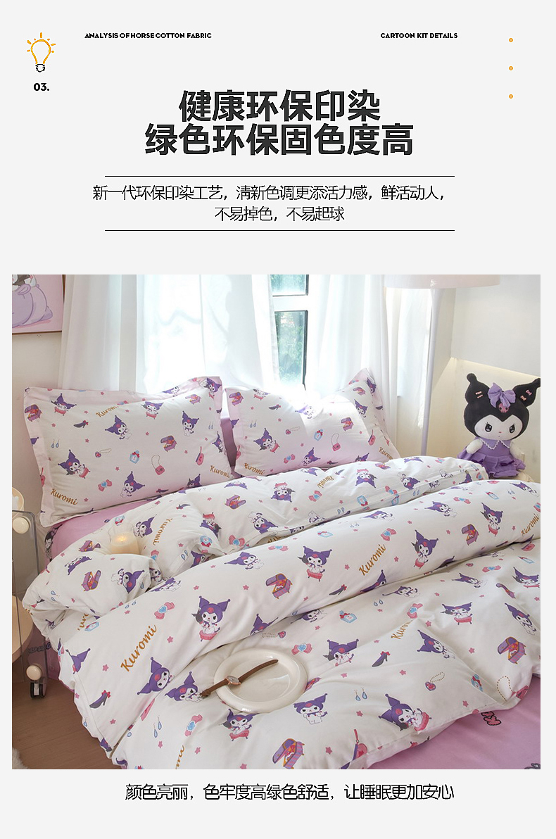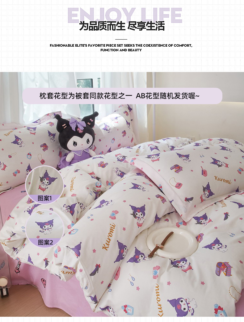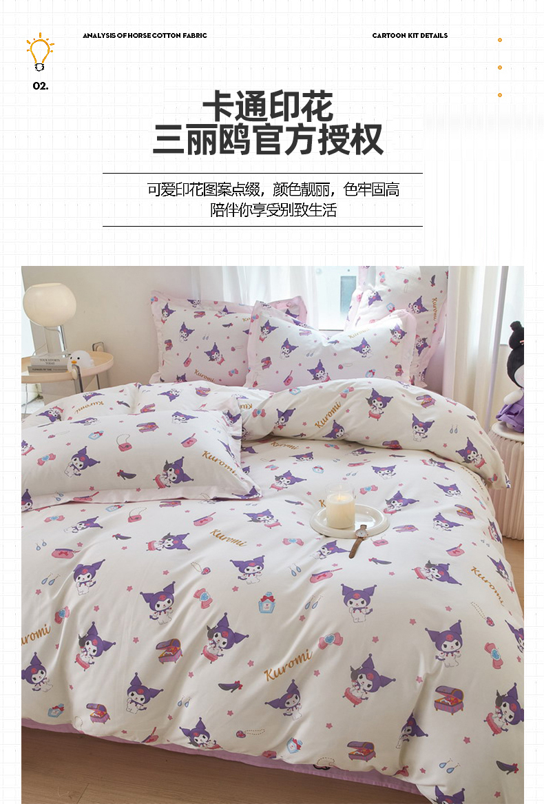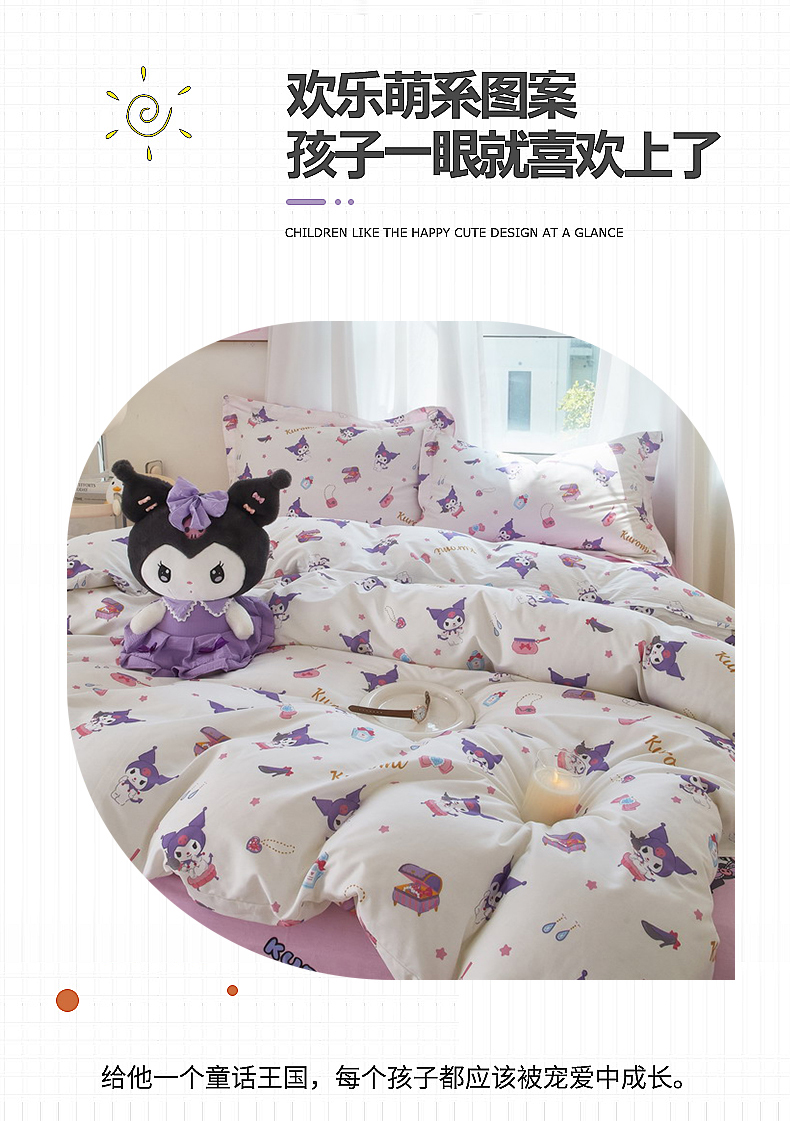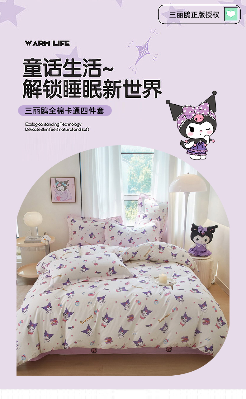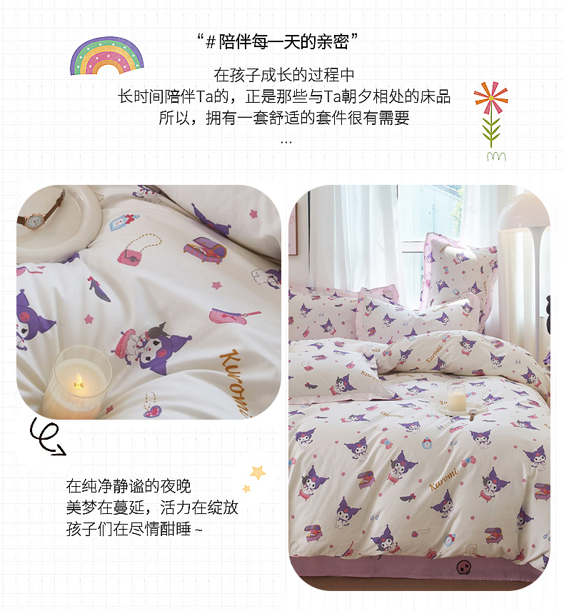 当前位置: 91家纺网 > 商品网购 > 床品套件 > 四件套 > 全棉普通四件套 > 蘭菲家纺 2024新款全棉小版卡通三丽鸥四件套 小臭美