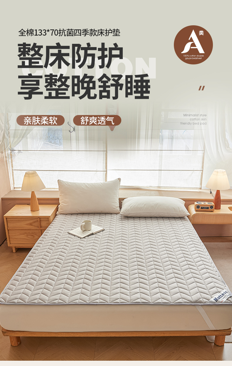 当前位置: 91家纺网 > 商品网购 > 床垫/床褥 > 普通床垫 > 丽诺床垫 2024新款升级款全棉13372抗菌防滑床护垫 灰色