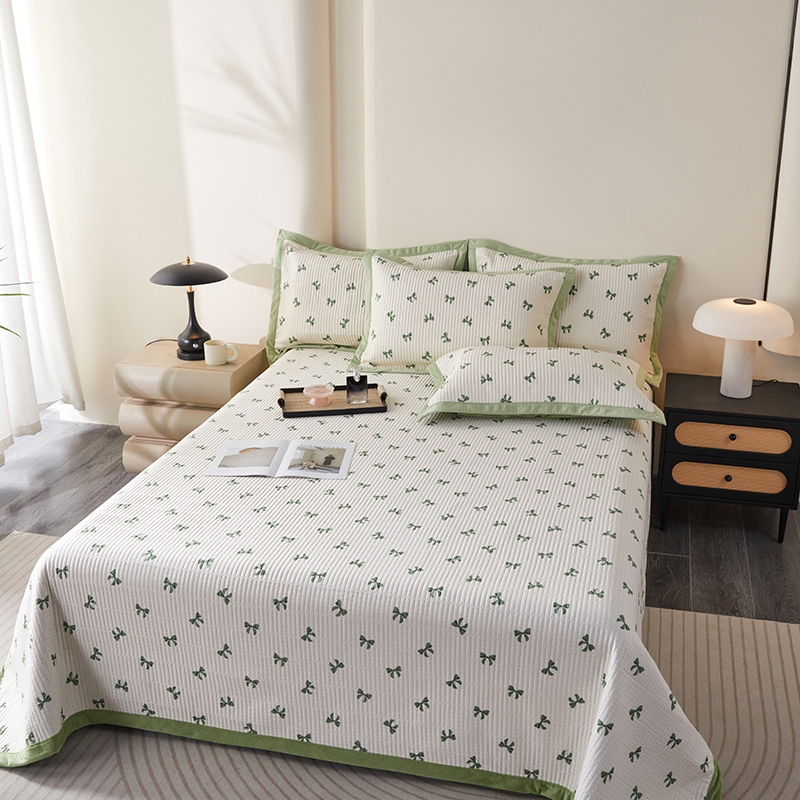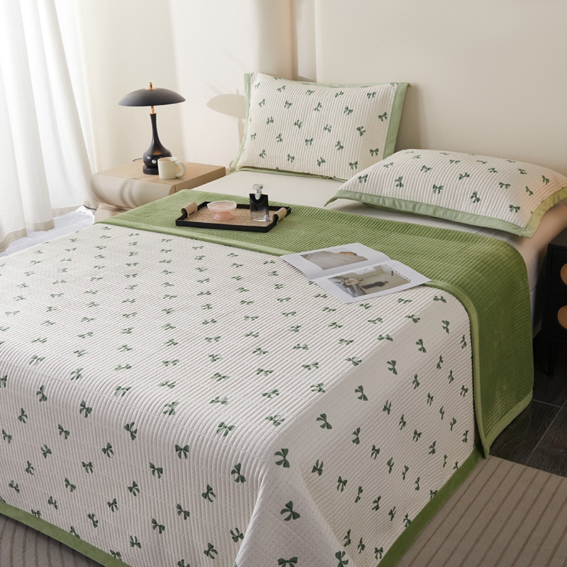 莎果家纺 2025秋冬一面天丝一面绒高温砂洗床盖三件套 小香风-绿
